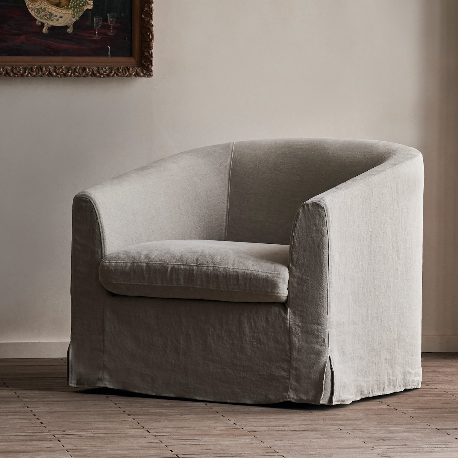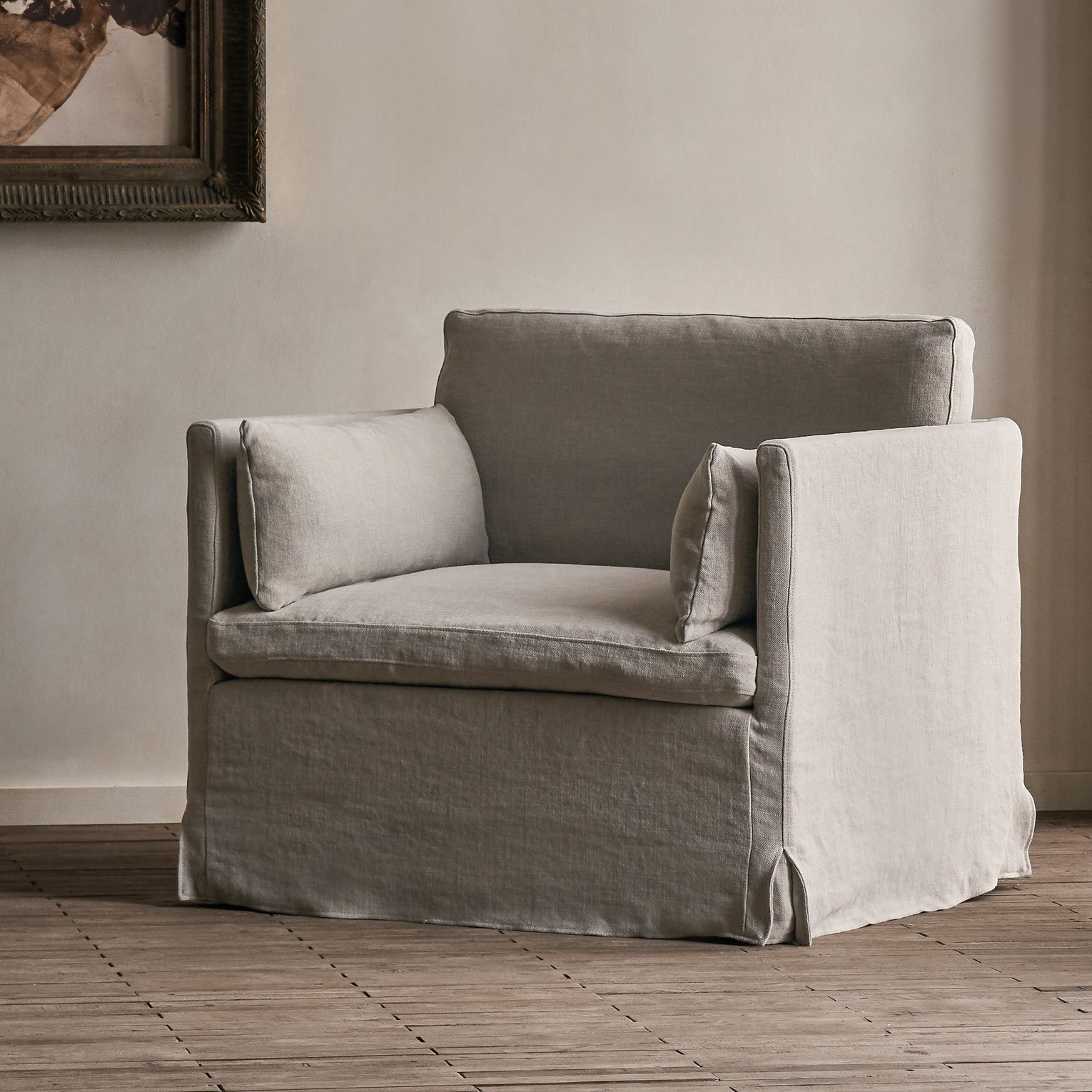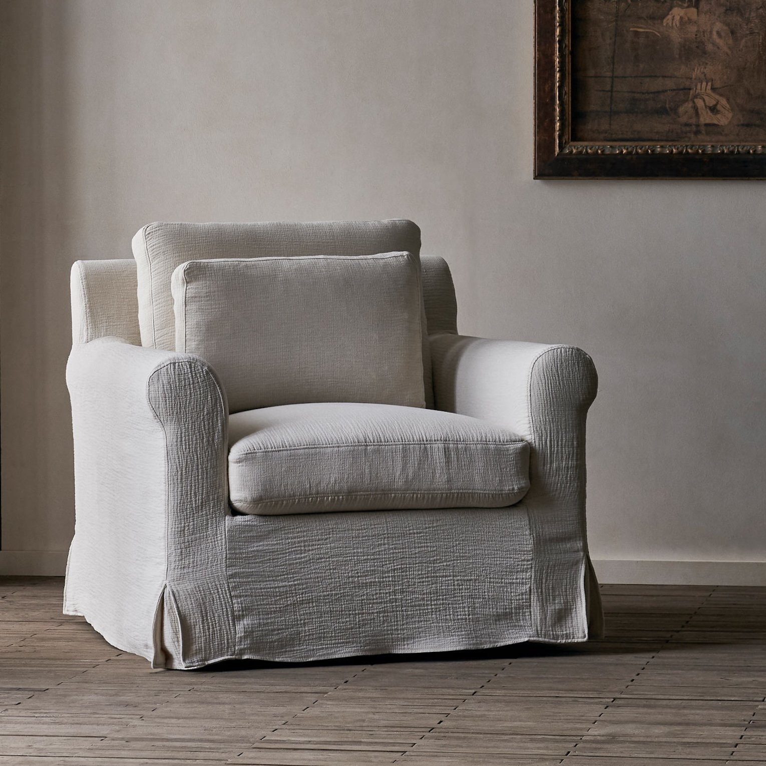 A sharp, slim shelter arm with concise proportions and an unexpectedly squishy plop. Don't let the contemporary looks fool you—Gabriel too is a softy at heart.