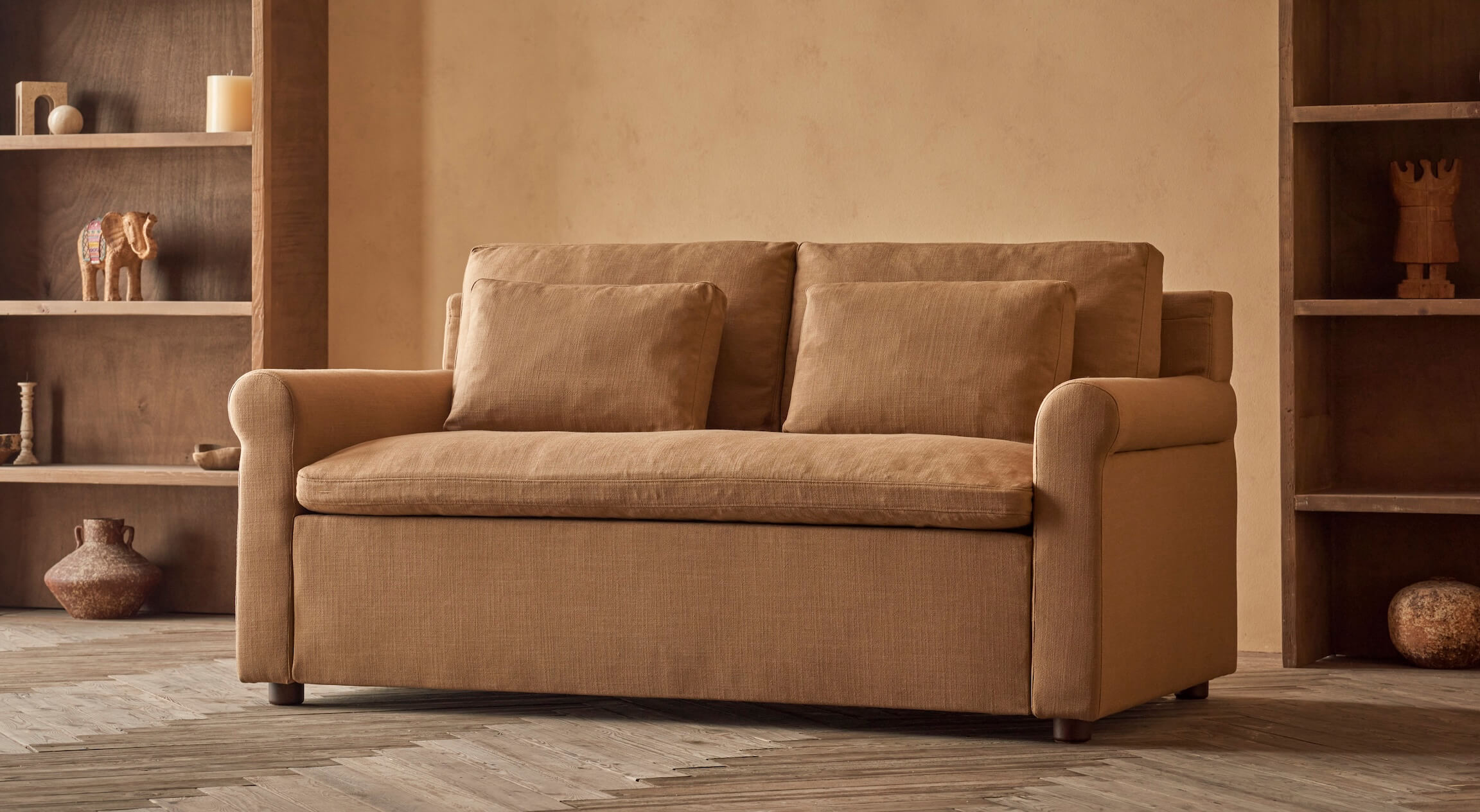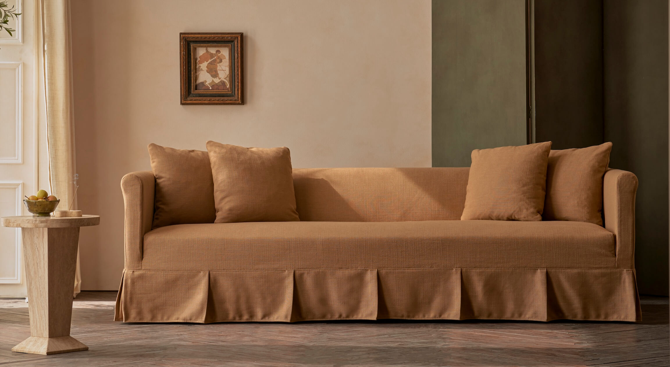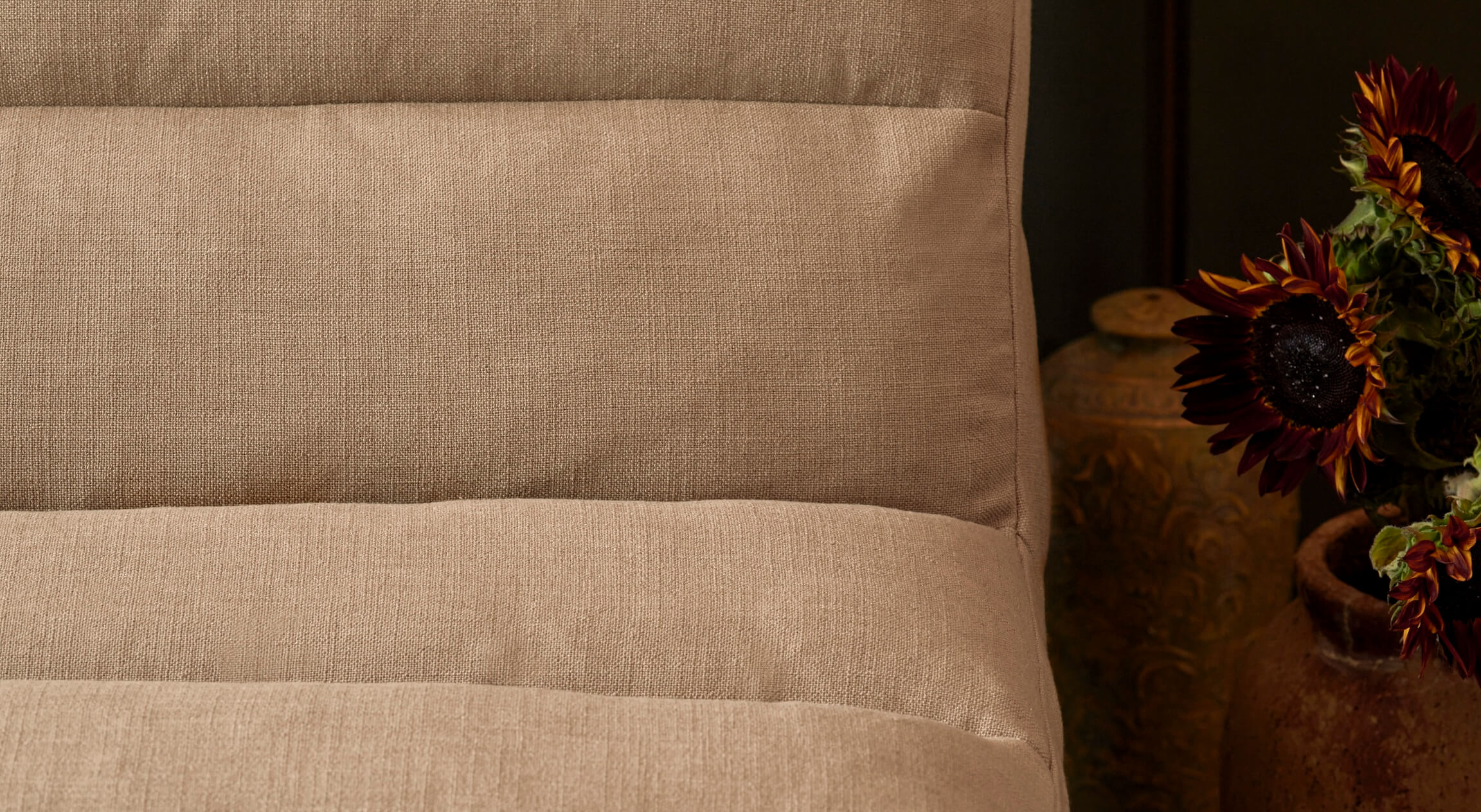 A subtle, faded, golden brown in a texture so linen-like you’d be shocked to learn it’s made entirely of recycled polyester. Recycled Poly Weave is heavyweight, durable, and fuss-free, making it our best performing fabric for spills, stains, and cleaning if you stick to the care instructions below.