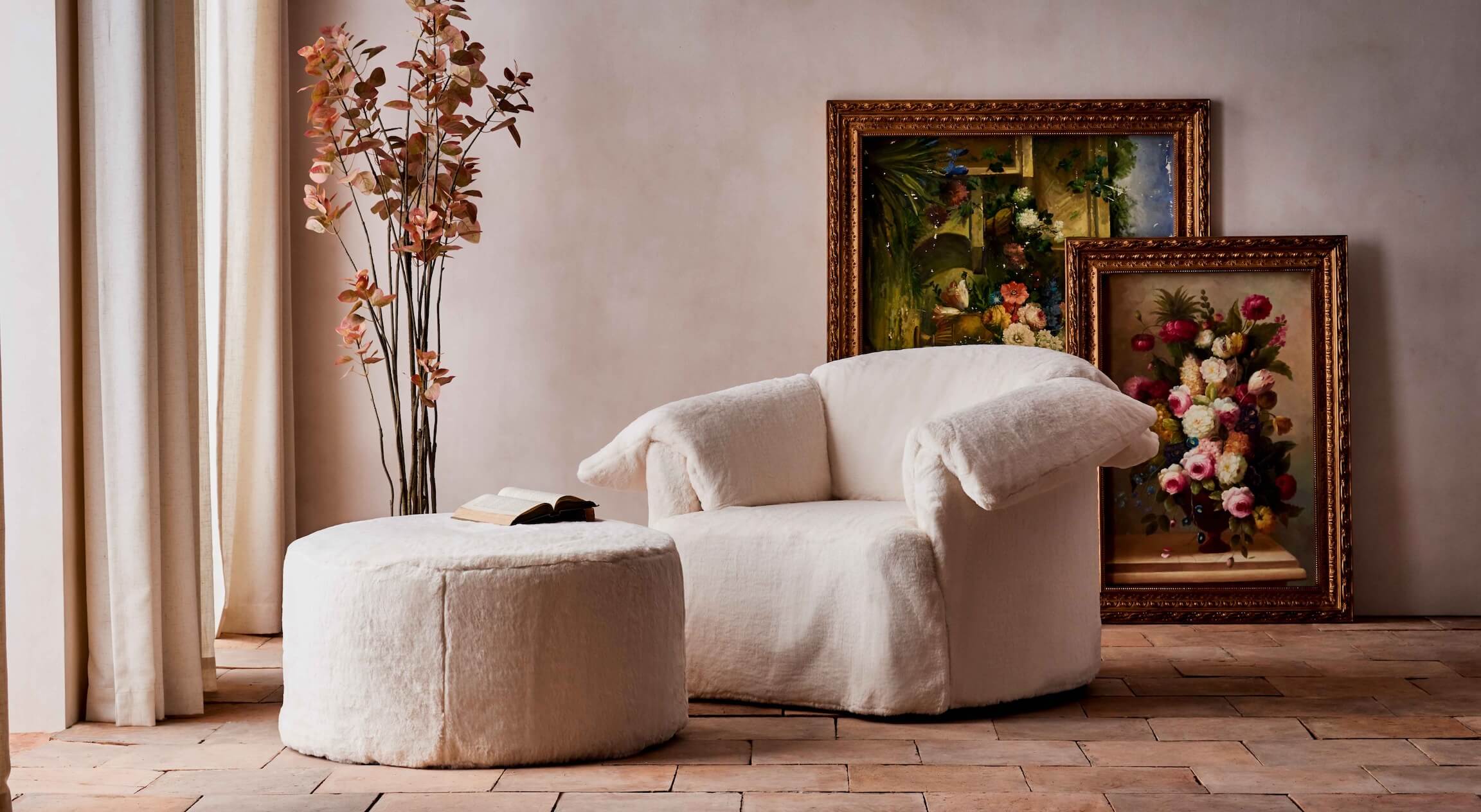 A creamy off-white in an impossibly soft and silky vegan faux fur that’s chic for all seasons. With Recycled Faux Fur, you can skip the dry cleaner altogether—machine-washing your slipcover at home will get you professional-grade results. Just remember, Recycled Faux Fur should never go in the dryer—allow your slip to air-dry completely.