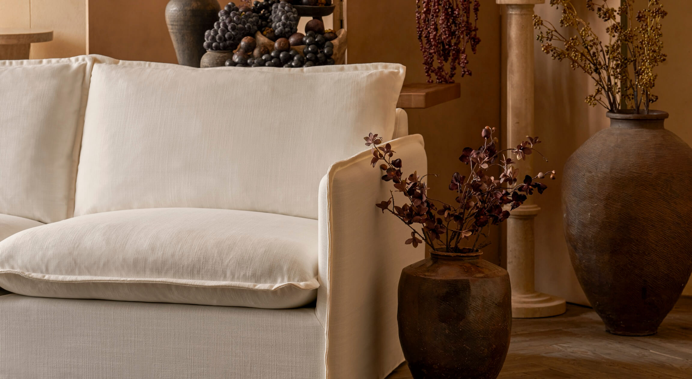 A soft white with gentle warm undertones in a texture so linen-like you’d be shocked to learn it’s made entirely of recycled polyester. Recycled Poly Weave is heavyweight, durable, and fuss-free, making it our best performing fabric for spills, stains, and cleaning if you stick to the care instructions below.