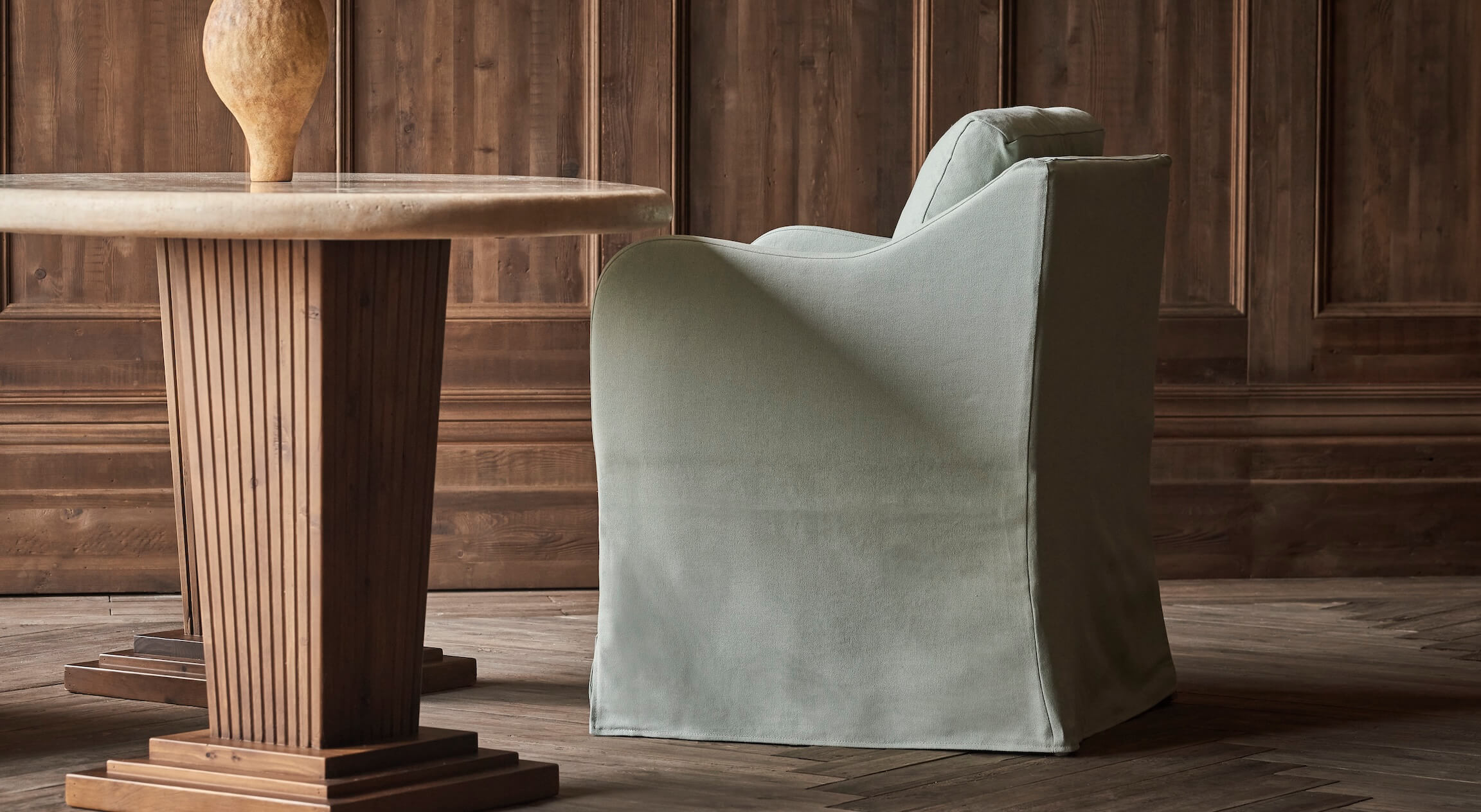 A refreshing pale green with a hint of cool blue. Every fiber of this stunning cotton-linen blend is saturated with dye before weaving for vibrant, nuanced color. Thread-Dyed Cotton Linen is exceptionally colorfast and can be spot-cleaned if you stick to the care instructions.