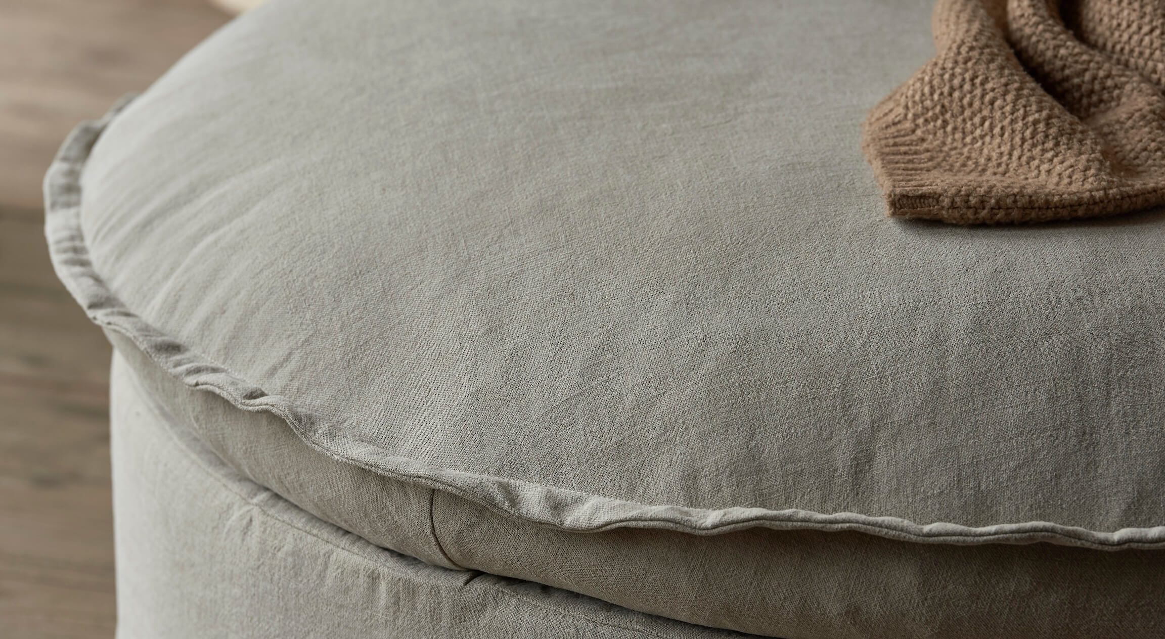 A light greige with warm undertones in an indulgent pure linen that epitomizes understated luxurious comfort. These meticulously pigment-dyed fabrics produce exquisite color variation, but have the potential to fade over time. While we don’t recommend spot-cleaning Medium Weight Linen, you can still machine wash these fabrics with cold water, mild detergent, and a bit of extra care.