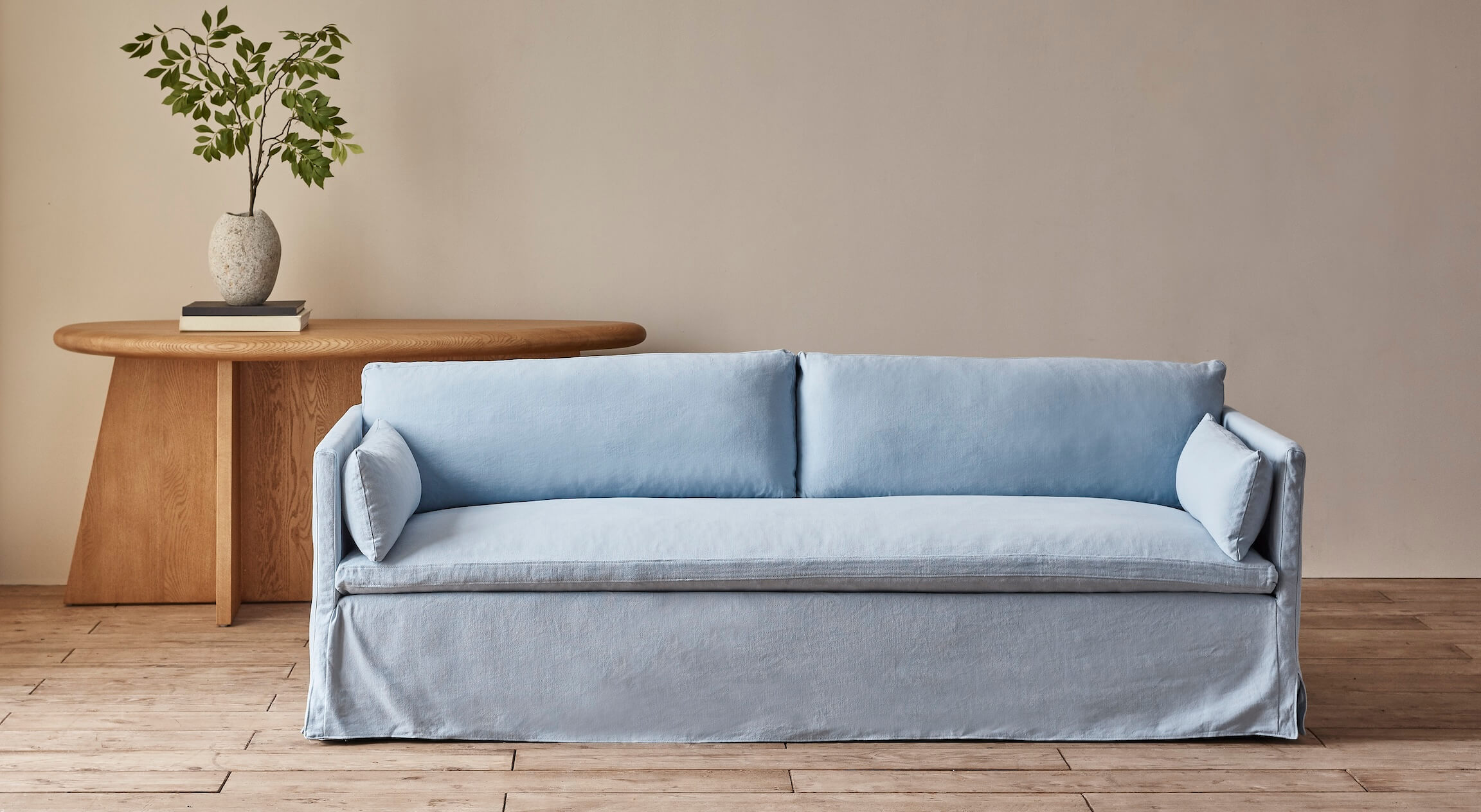 A light powder blue in a blend of cotton’s familiar comfort and linen’s airy elegance. You can wash these whisper-soft fabrics in your home machine if you stick to the care instructions below.