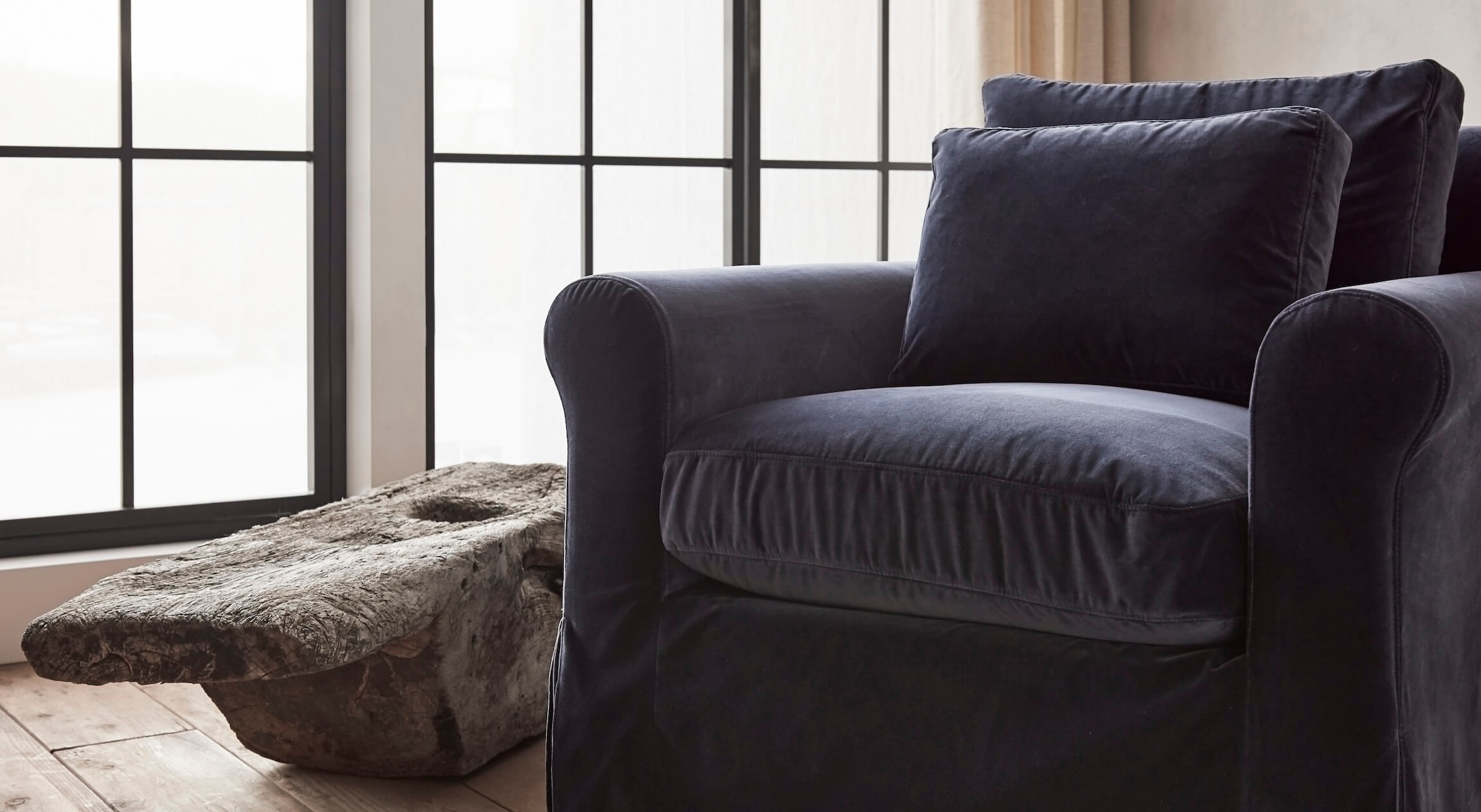 A deep, inky blue that can stand out in a space as easily as it can blend in. You can wash these pre-washed, rich velvets in your home machine, and they can be spot cleaned if you stick to the care instructions below. Just keep in mind that they are all-natural cotton and will shrink if you dry them with too much heat.