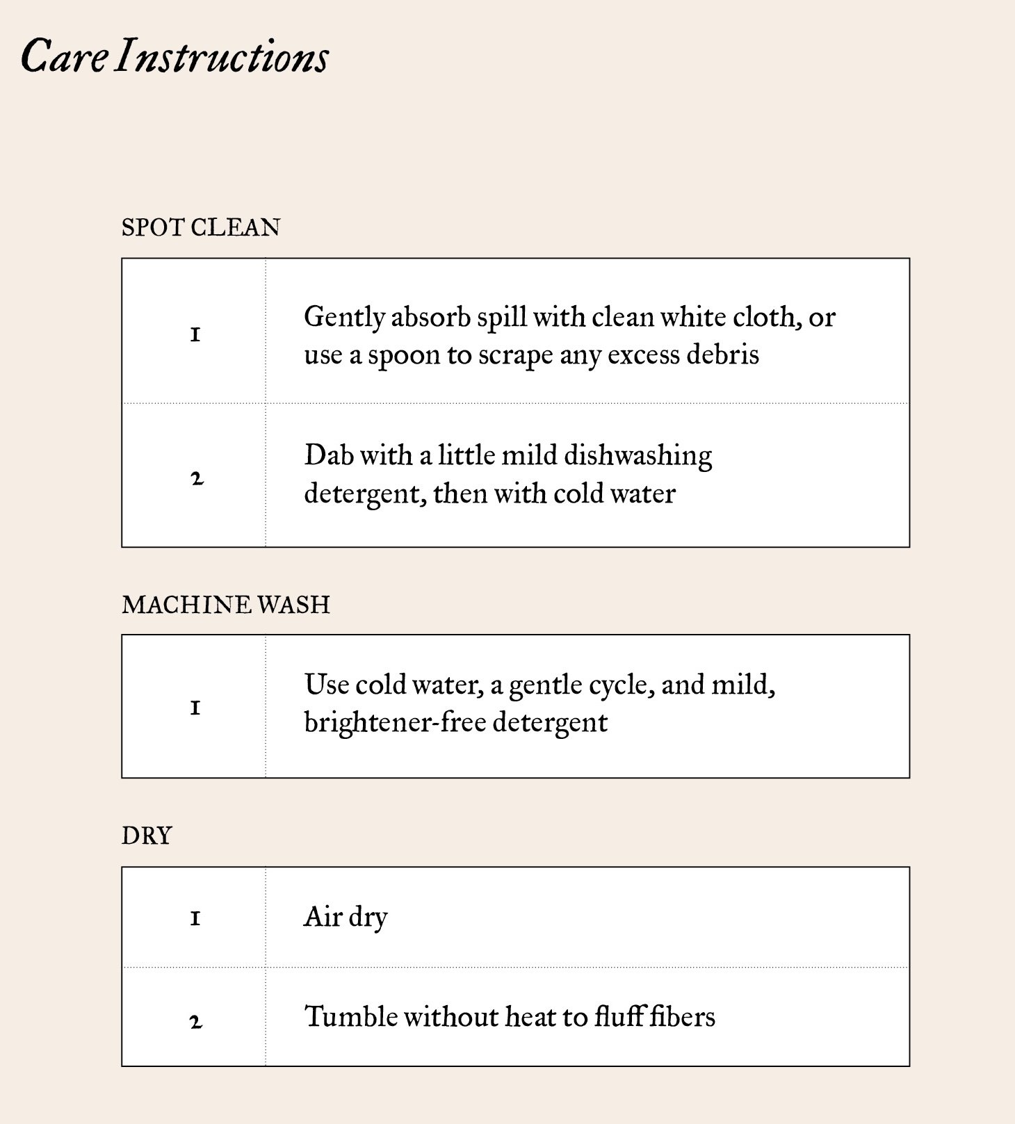 A luscious caramel brown that gives extremely versatile, “neutral but definitely not boring” vibes. You can wash these pre-washed, rich velvets in your home machine, and they can be spot cleaned if you stick to the care instructions below. Just keep in mind that they are all-natural cotton and will shrink if you dry them with too much heat.