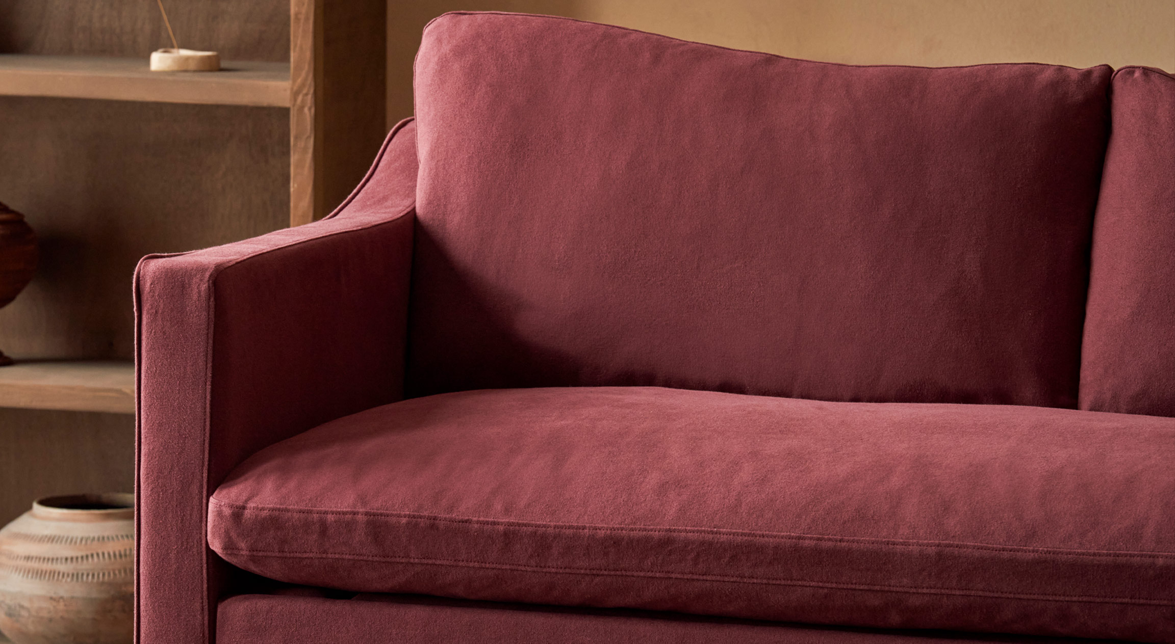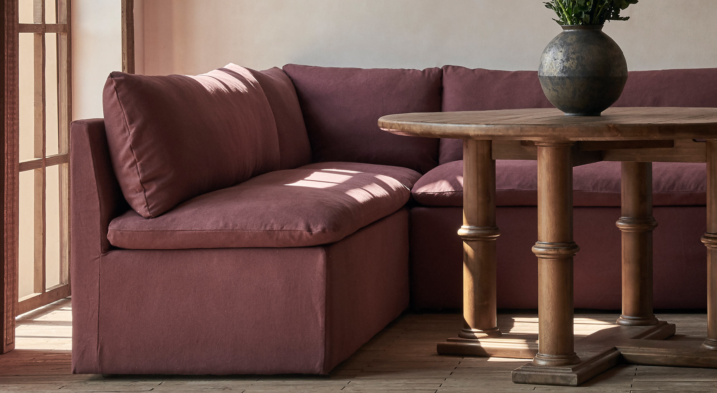 A luscious soft burgundy with plum tones. Every fiber of this stunning cotton-linen blend is saturated with dye before weaving for vibrant, nuanced color. Thread-Dyed Cotton Linen is exceptionally colorfast and can be spot-cleaned if you stick to the care instructions.