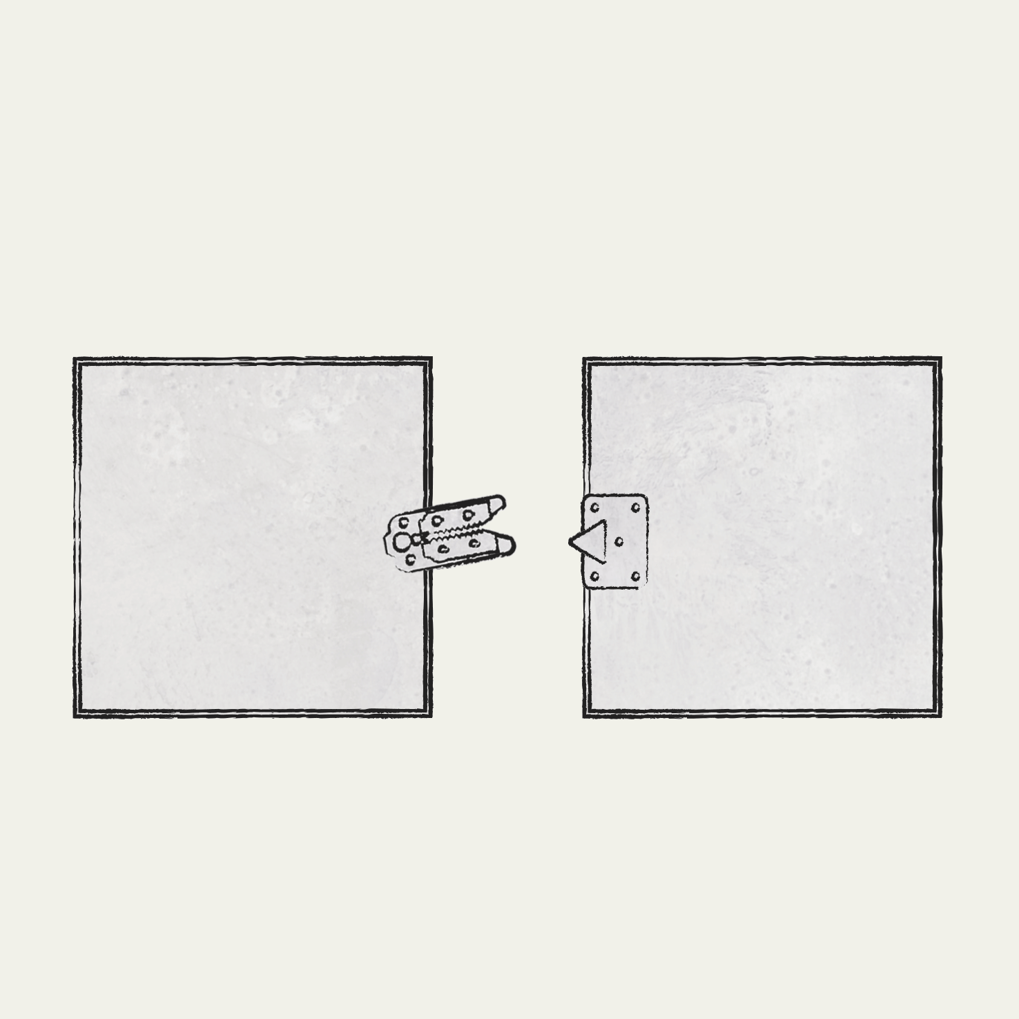 Zinc "alligator clips" are affixed to the underside of every sectional component. These clips consist of two parts—a long "toothy" side (hence the name) and a metal peg it "bites" into.