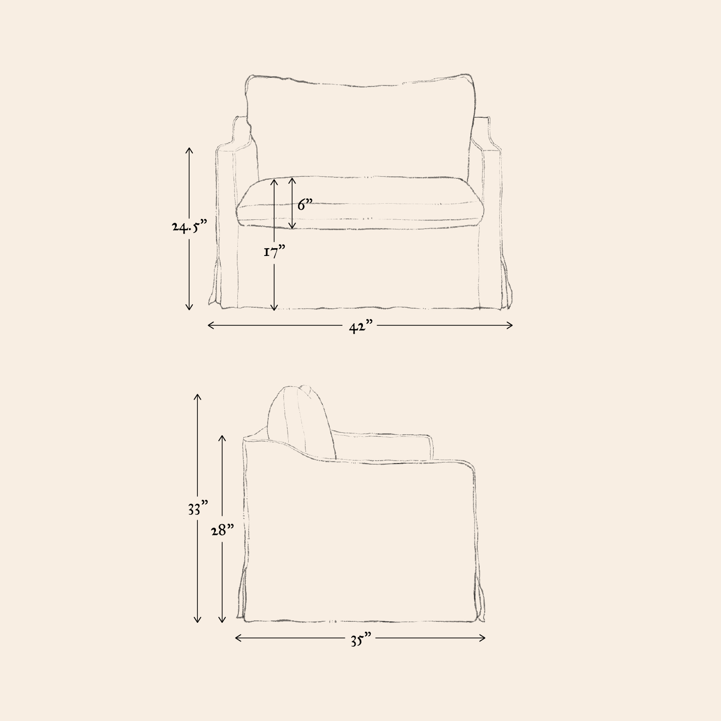 You can read more about our cushions in Materials & Construction or in our post, “Inside scoop: Feather Down vs Poly Fill.”