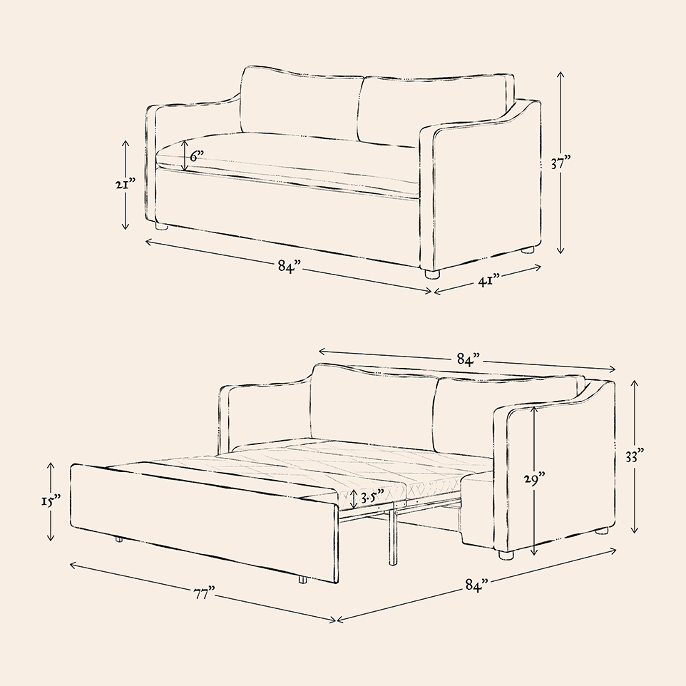 Since our sleeper sofa frames are fully upholstered, only the cushion slipcovers can be removed for cleaning. For detailed instructions on spot cleaning, dry cleaning, and machine washing, check out our post, ”Cleaning your slipcover.”
