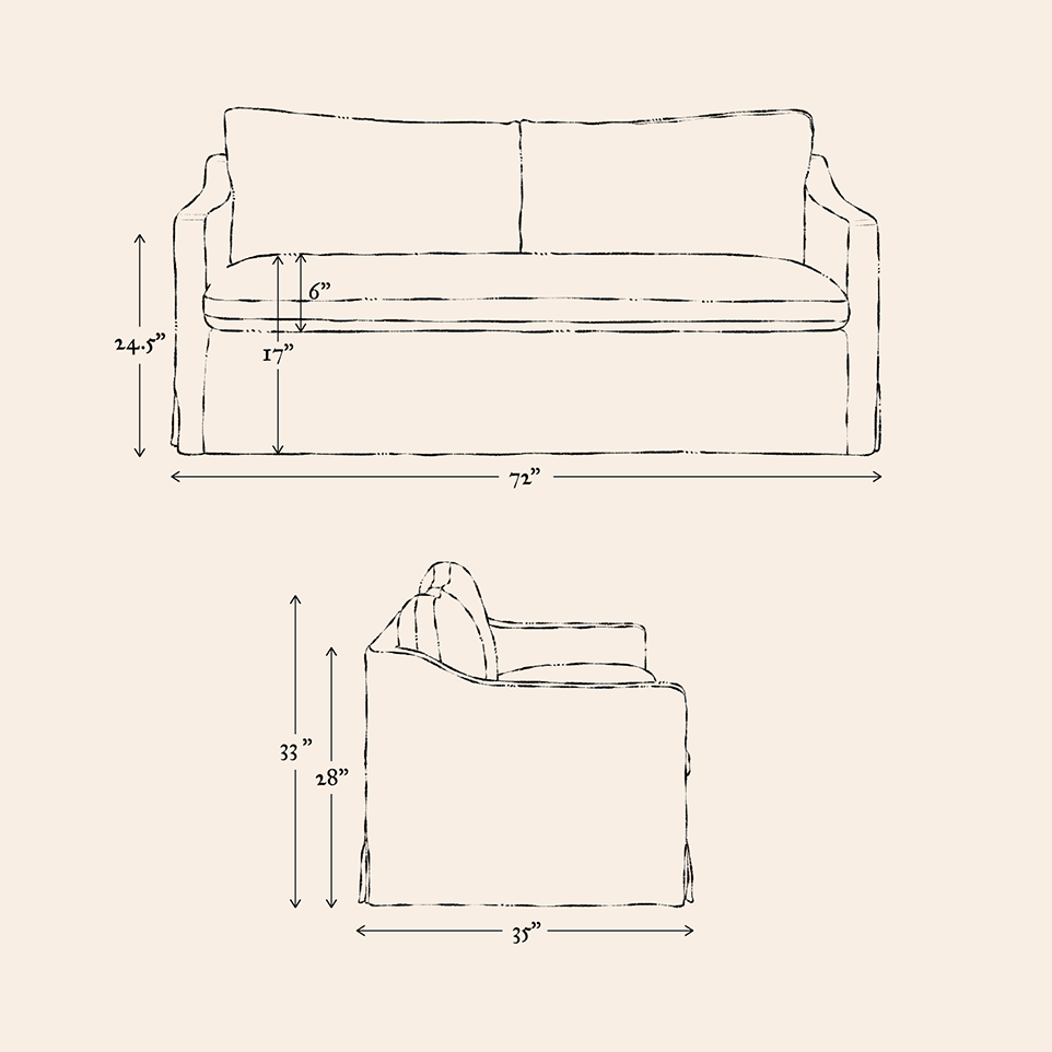 You can read more about our cushions in Materials & Construction or in our post, “Inside scoop: Feather Down vs Poly Fill.”