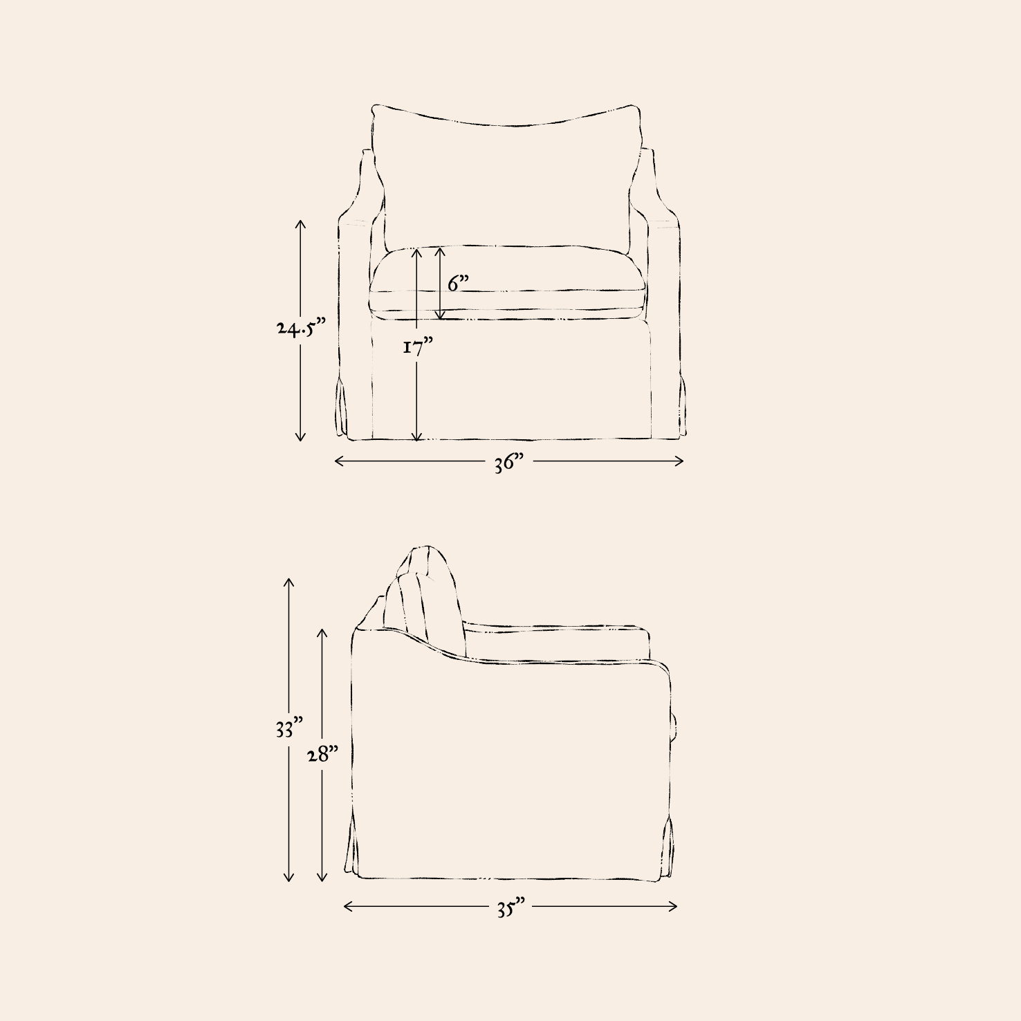 You can read more about our cushions in Materials & Construction or in our post, “Inside scoop: Feather Down vs Poly Fill.”