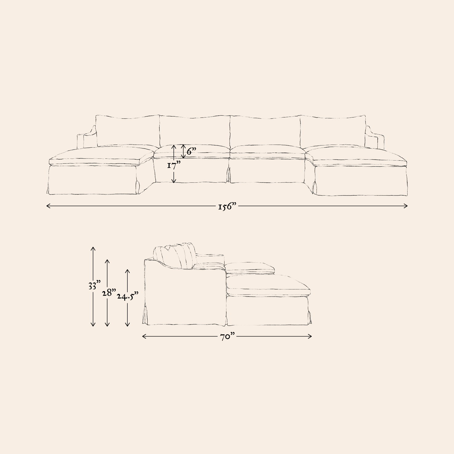 - Overall dimensions: 156”W x 70”D x 33”H