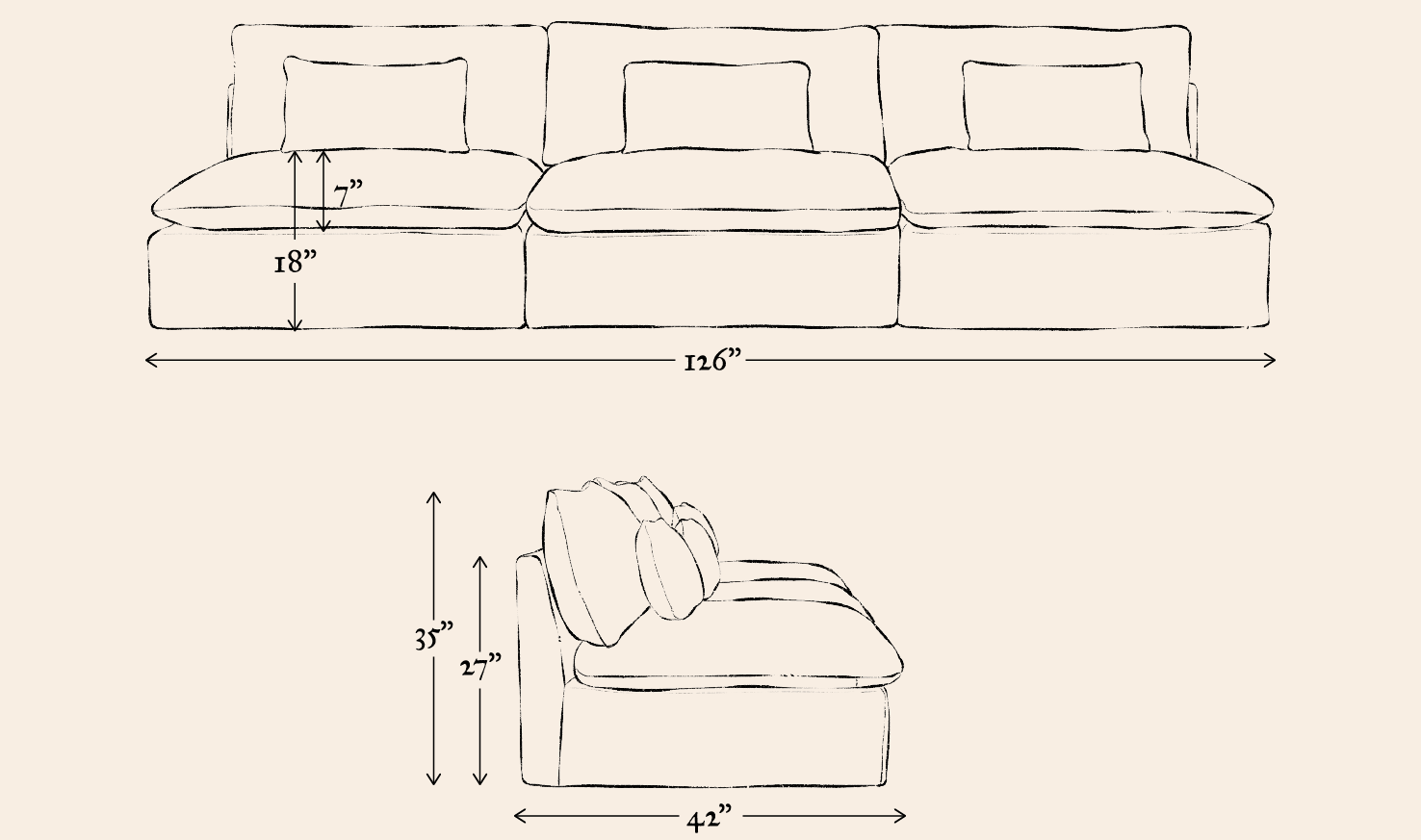 Our furniture is hand-made and in many cases quite soft so keep in mind dimensions may vary by an inch or two. Prefer a custom size? Contact us.