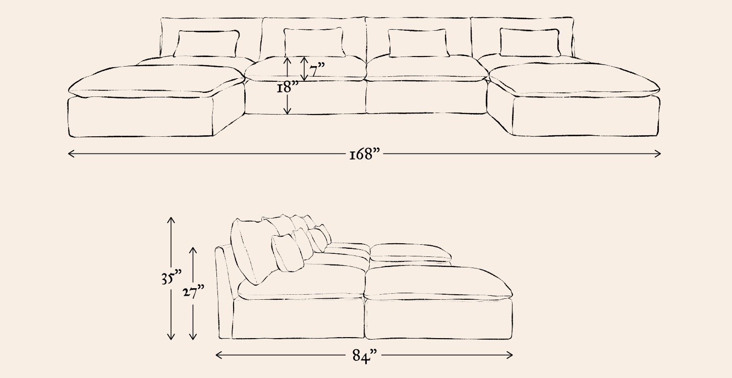 Our furniture is hand-made and in many cases quite soft so keep in mind dimensions may vary by an inch or two. Prefer a custom size? Contact us.