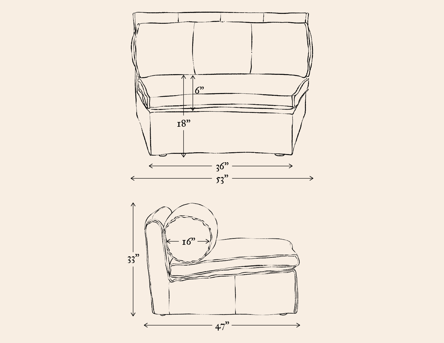 Our furniture is hand-made and in many cases quite soft so keep in mind dimensions may vary by an inch or two. Prefer a custom size? Contact us.