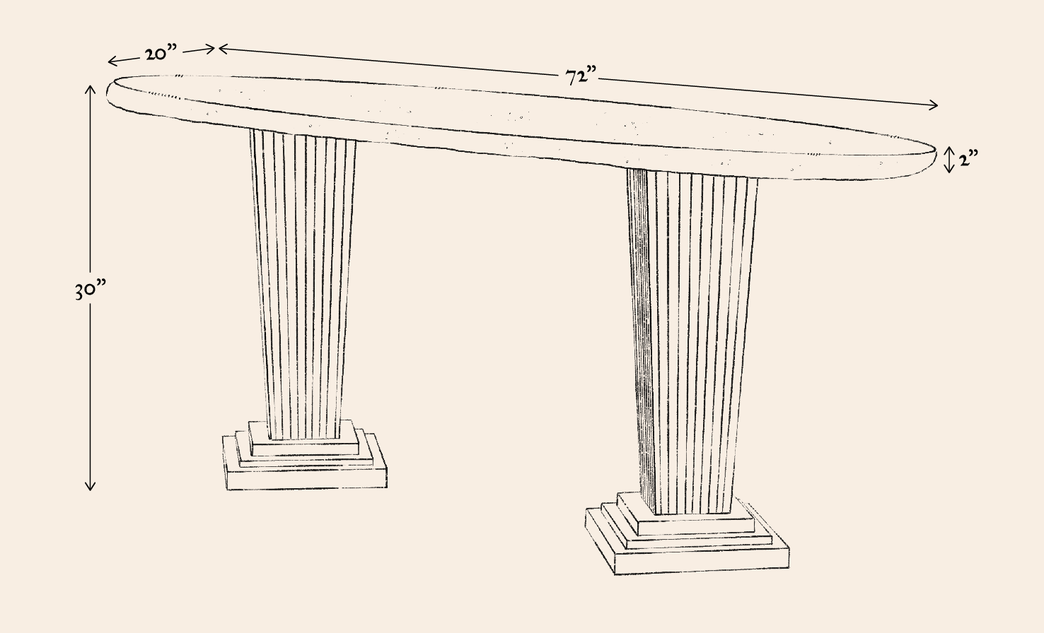 All travertine and wood selected, cut, laminated, assembled, and sanded by hand