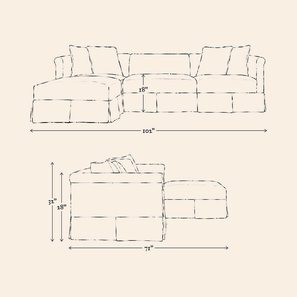 Our lofty Feather Down is ethically sourced, and our vegan Poly Fill is designed to mimic the familiar fluff of feathers. We mix a small percentage of vegan poly fiber into the Feather Down cushions for a bit of spring.