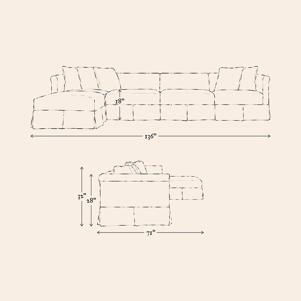 Our lofty Feather Down is ethically sourced, and our vegan Poly Fill is designed to mimic the familiar fluff of feathers. We mix a small percentage of vegan poly fiber into the Feather Down cushions for a bit of spring.
