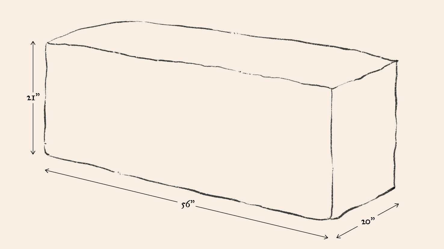 - Overall dimensions: 56”W x 20”D x 21”H