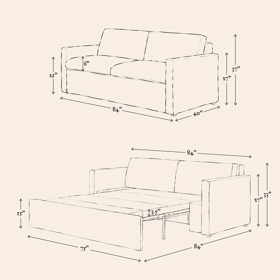 Since our sleeper sofa frames are fully upholstered, only the cushion slipcovers can be removed for cleaning. For detailed instructions on spot cleaning, dry cleaning, and machine washing, check out our post, “Cleaning your slipcover.”