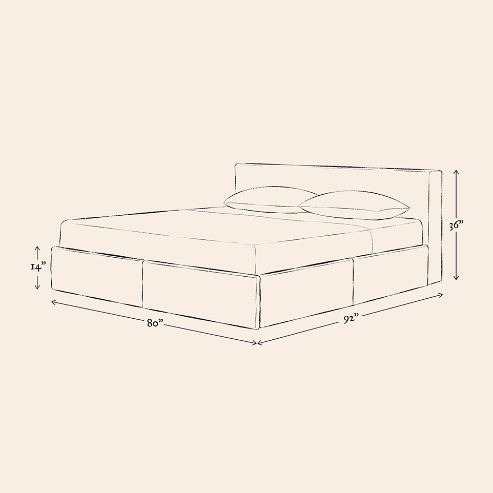 - End-of-bed drawer space: 34.5”W x 26.4”D x 5.5”H(x2)