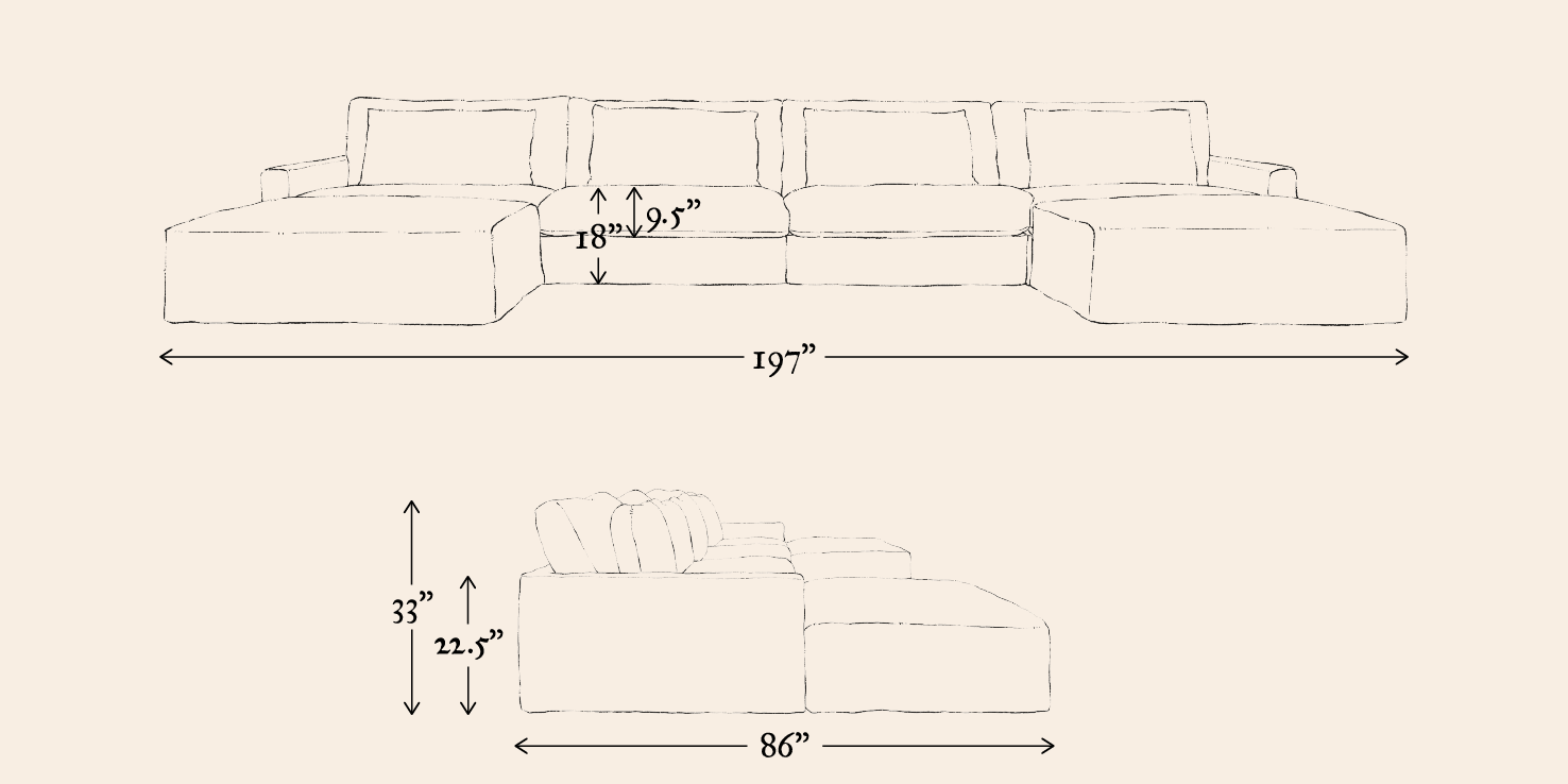 Our furniture is hand-made and in many cases quite soft so keep in mind dimensions may vary by an inch or two. Prefer a custom size? Contact us.