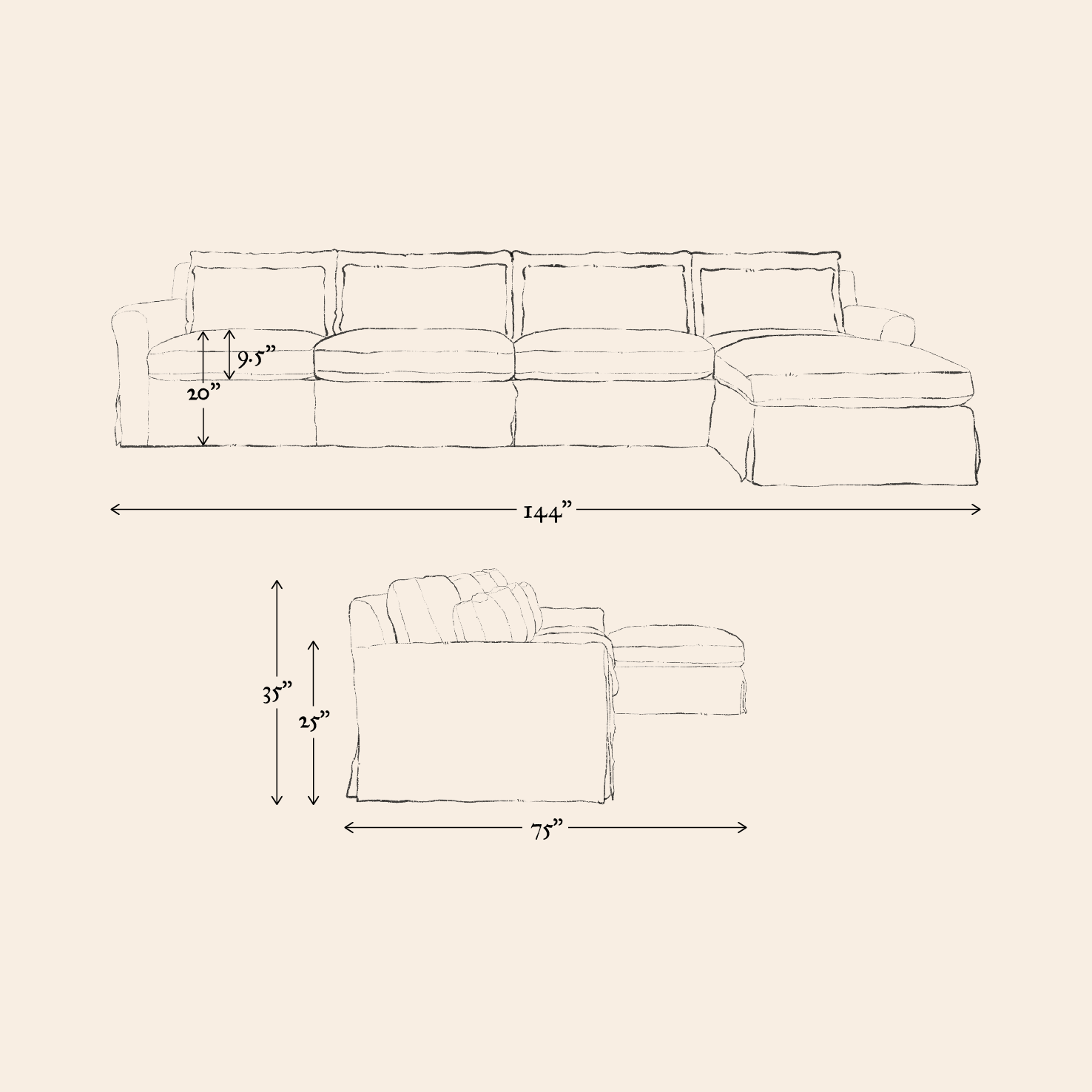 For detailed instructions on spot cleaning, dry cleaning, and machine washing, check out our post, “Cleaning your slipcover.”