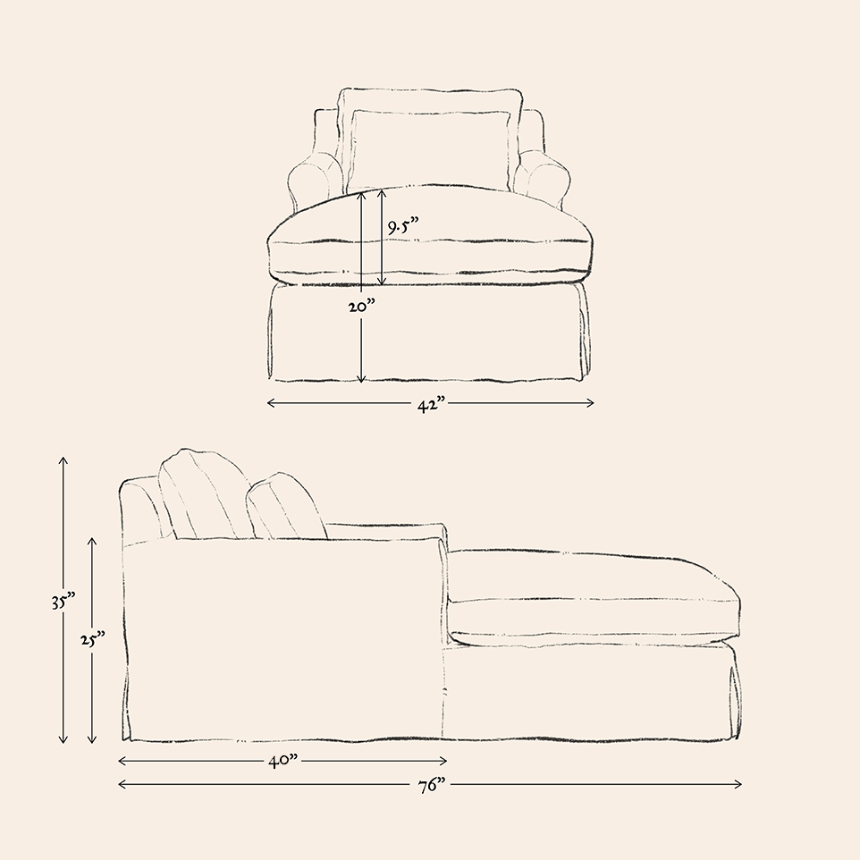 Our furniture is hand-made and in many cases quite soft so keep in mind dimensions may vary by an inch or two. Prefer a custom size? Contact us.
