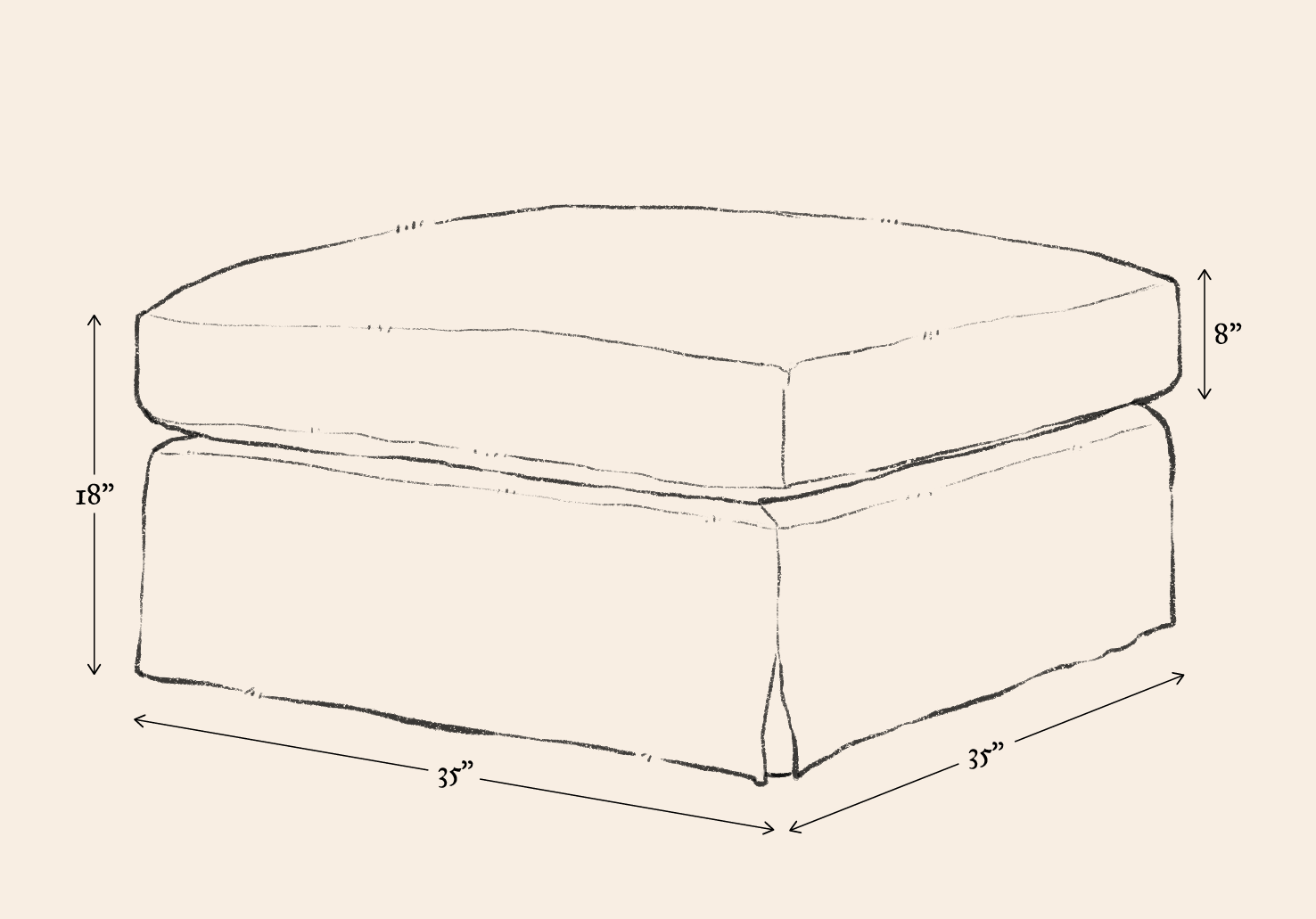 Our furniture is hand-made and in many cases quite soft so keep in mind dimensions may vary by an inch or two. Prefer a custom size? Contact us.