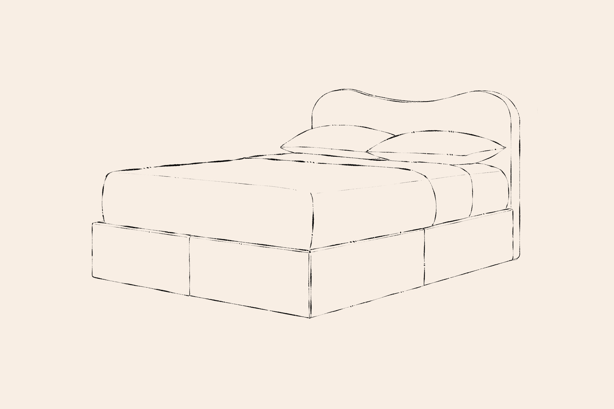 - Space for mattress: 61.5”W x 81.5”D