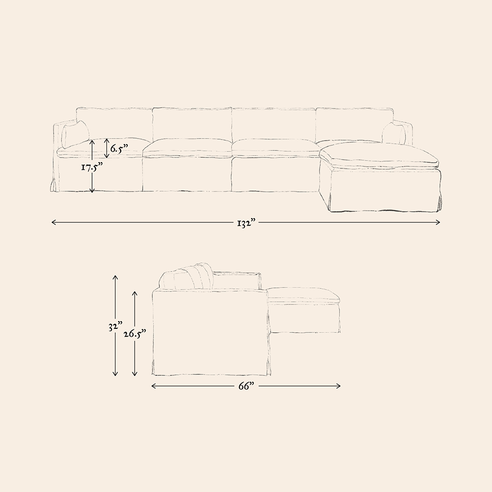Our lofty Feather Down is ethically sourced, and our vegan Poly Fill is designed to mimic the familiar fluff of feathers. We mix a small percentage of vegan poly fiber into the Feather Down cushions for a bit of spring.