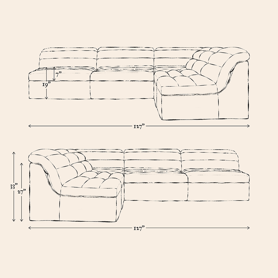Our furniture is hand-made and in many cases quite soft so keep in mind dimensions may vary by an inch or two. Prefer a custom size? Contact us.
