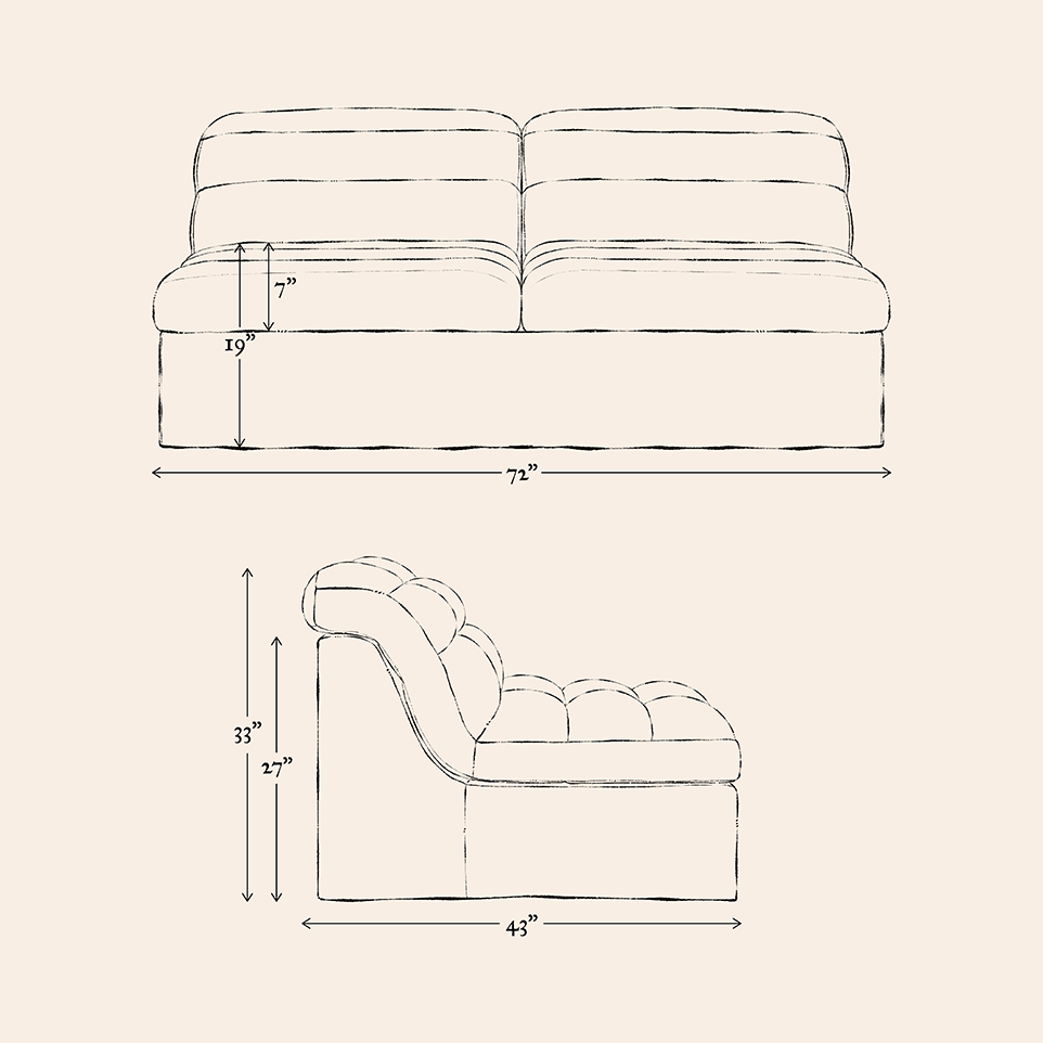 Our furniture is hand-made and in many cases quite soft so keep in mind dimensions may vary by an inch or two. Prefer a custom size? Contact us.