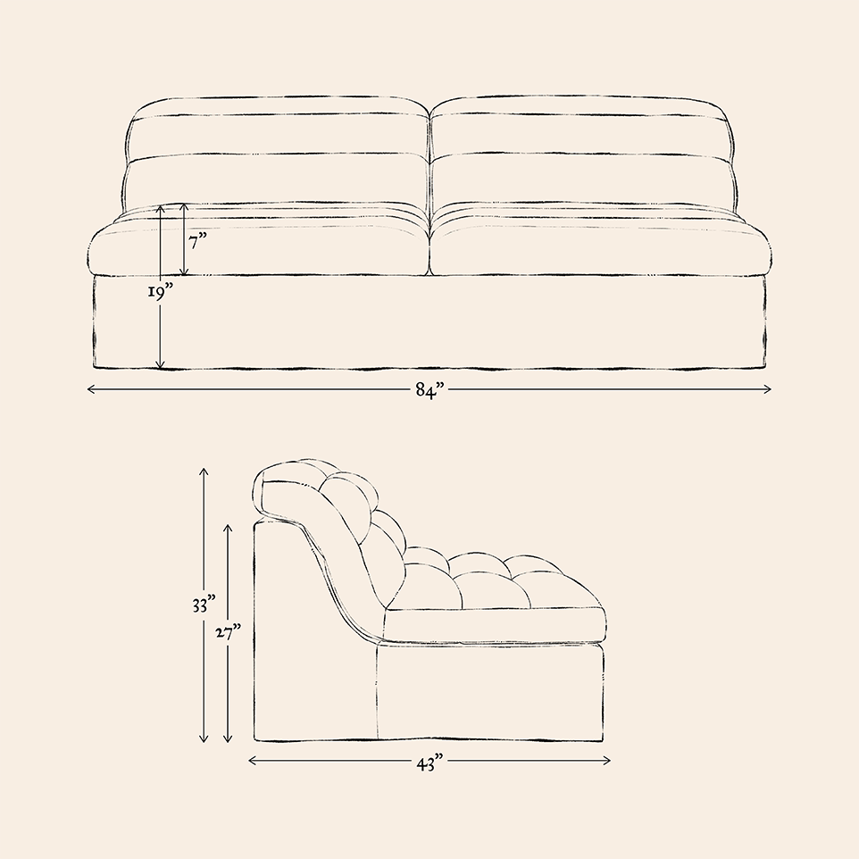 Our furniture is hand-made and in many cases quite soft so keep in mind dimensions may vary by an inch or two. Prefer a custom size? Contact us.