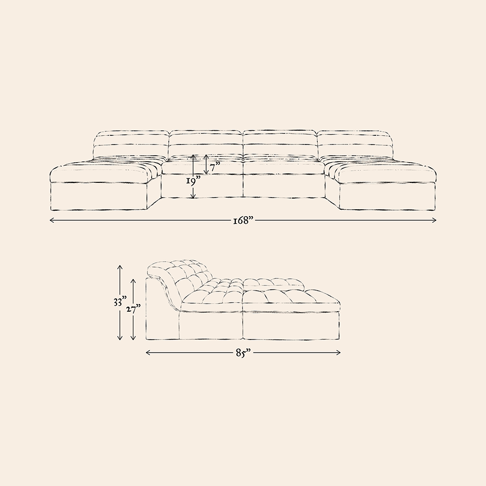 Our furniture is hand-made and in many cases quite soft so keep in mind dimensions may vary by an inch or two. Prefer a custom size? Contact us.