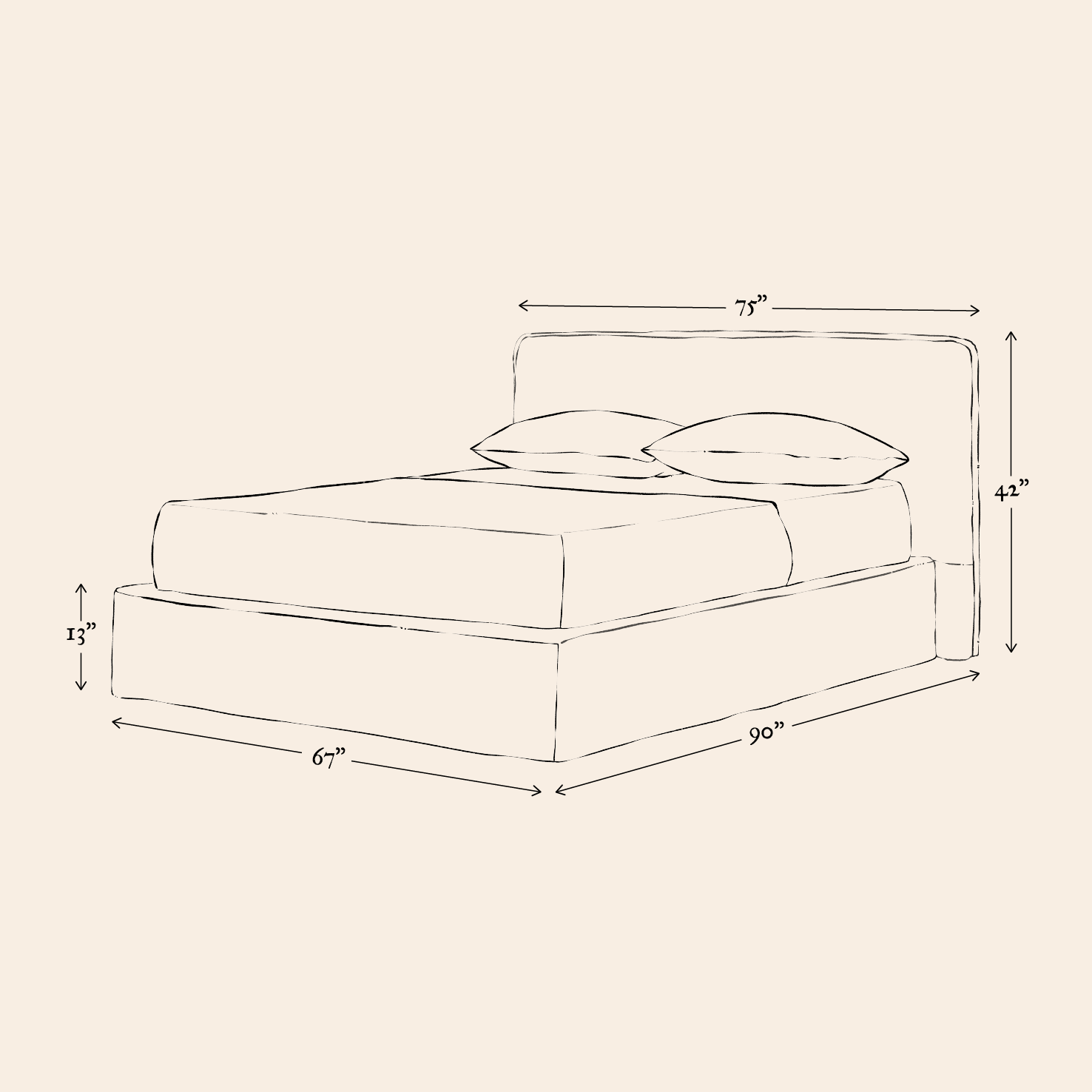 - Headboard: 75”W x 6”D x 42”H