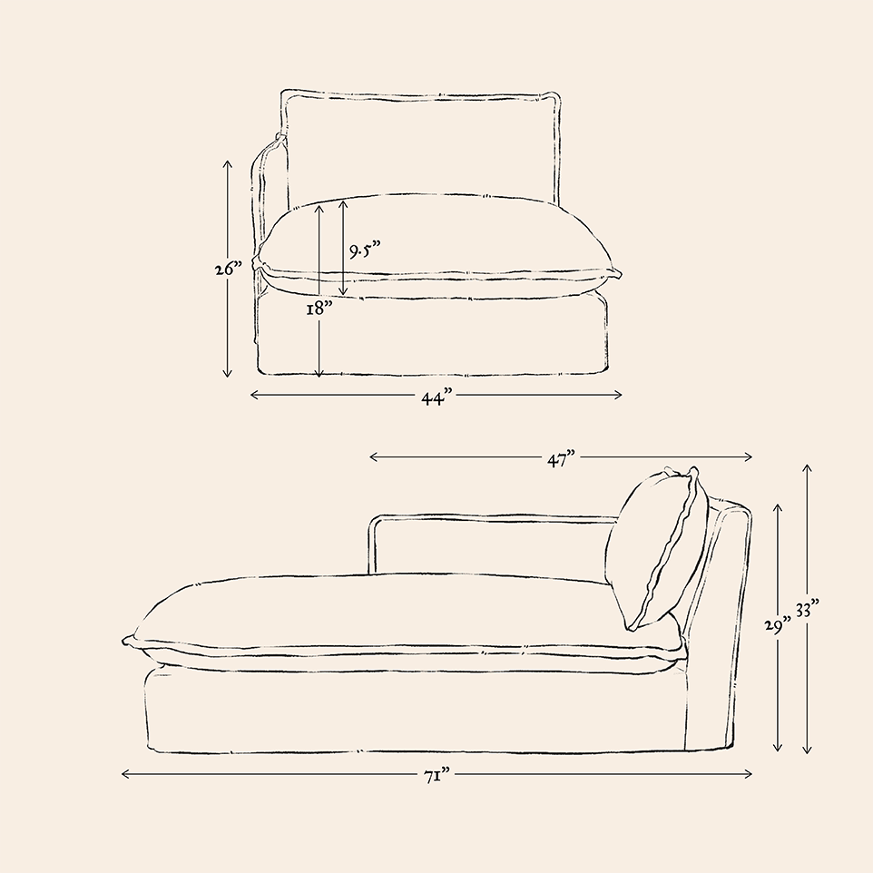 Our furniture is hand-made and in many cases quite soft so keep in mind dimensions may vary by an inch or two. Prefer a custom size? Contact us.