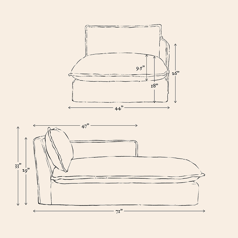 Our furniture is hand-made and in many cases quite soft so keep in mind dimensions may vary by an inch or two. Prefer a custom size? Contact us.