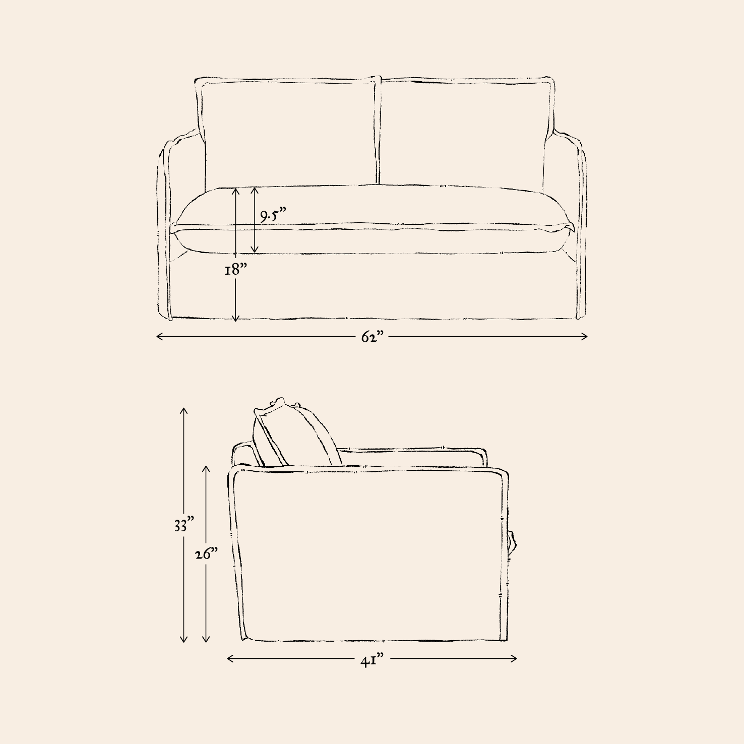 Our furniture is hand-made and in many cases quite soft so keep in mind dimensions may vary by an inch or two. Prefer a custom size? Contact us.