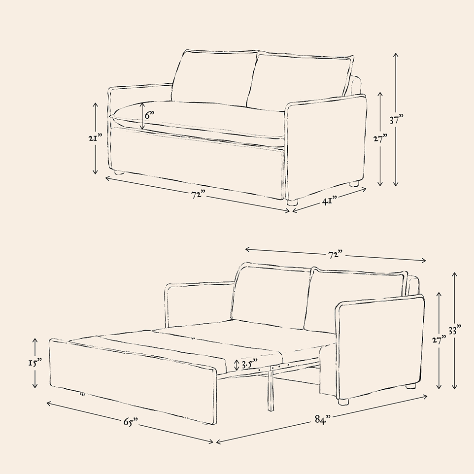 Since our sleeper sofa frames are fully upholstered, only the cushion slipcovers can be removed for cleaning. For detailed instructions on spot cleaning, dry cleaning, and machine washing, check out our post, “Cleaning your slipcover.”