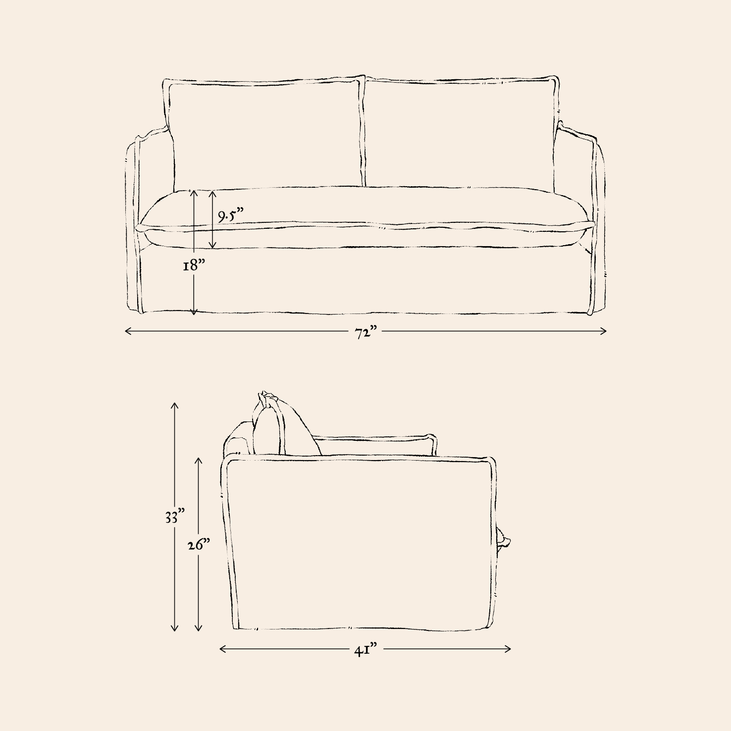 Our furniture is hand-made and in many cases quite soft so keep in mind dimensions may vary by an inch or two. Prefer a custom size? Contact us.