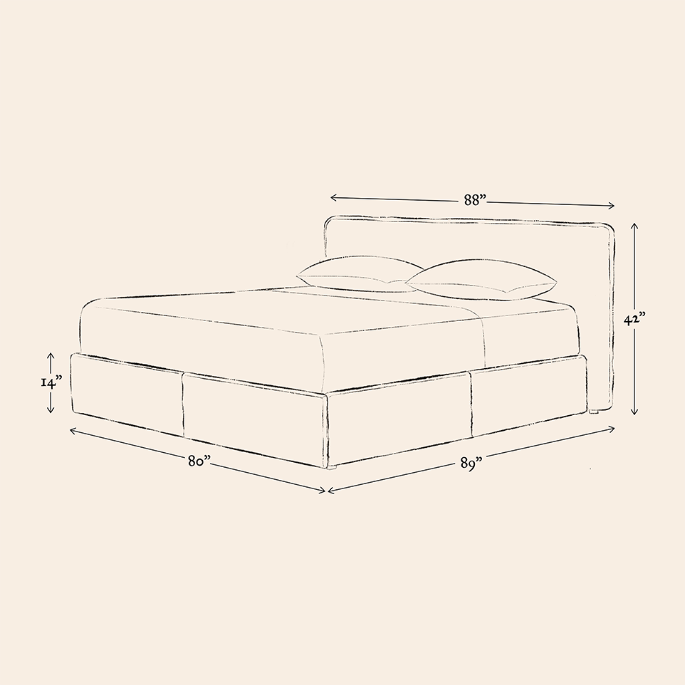 - End-of-bed drawer space: 34.5”W x 26.4”D x 5.5”H