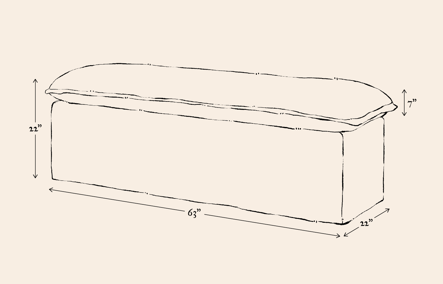 Our furniture is hand-made and in many cases quite soft so keep in mind dimensions may vary by an inch or two. Prefer a custom size? Contact us.