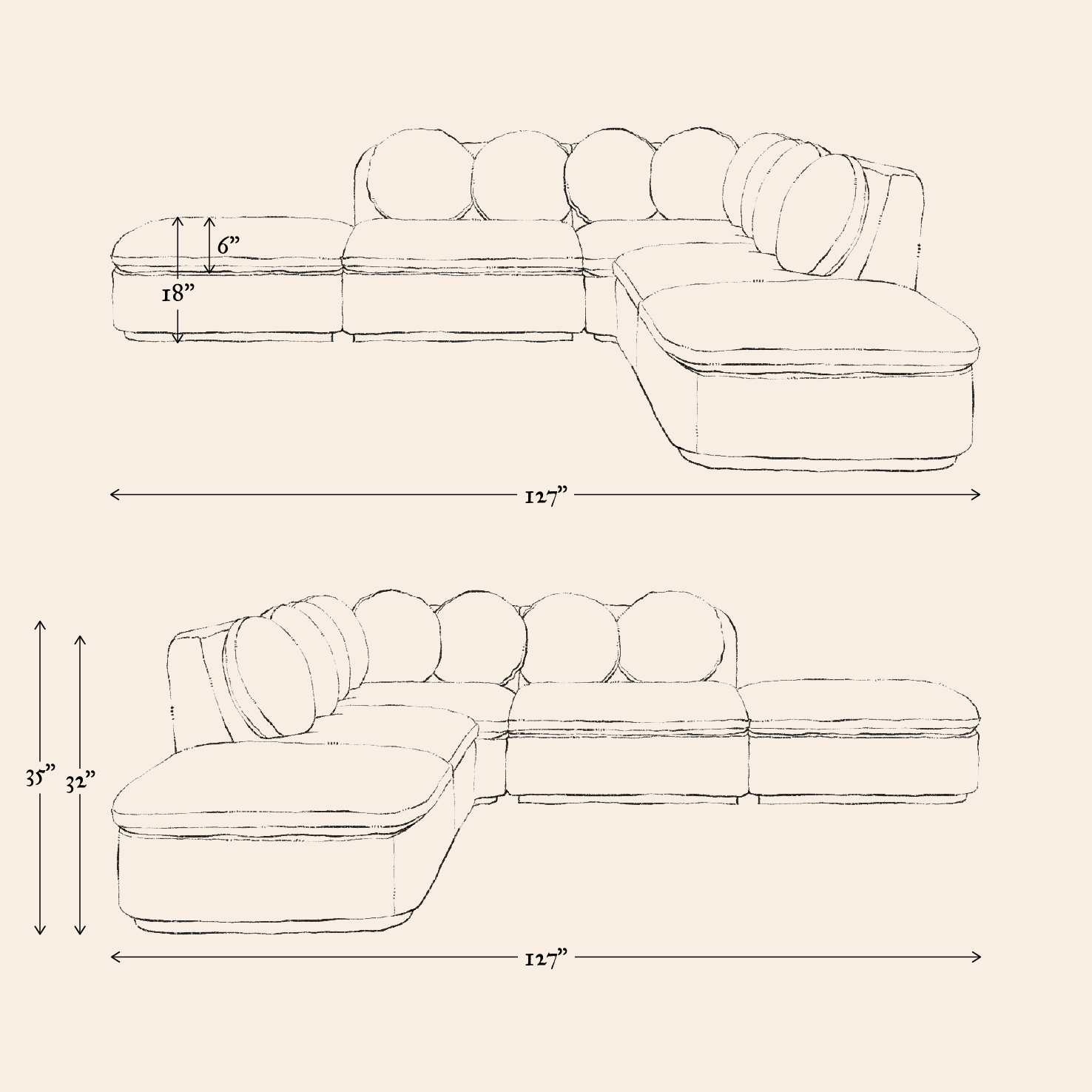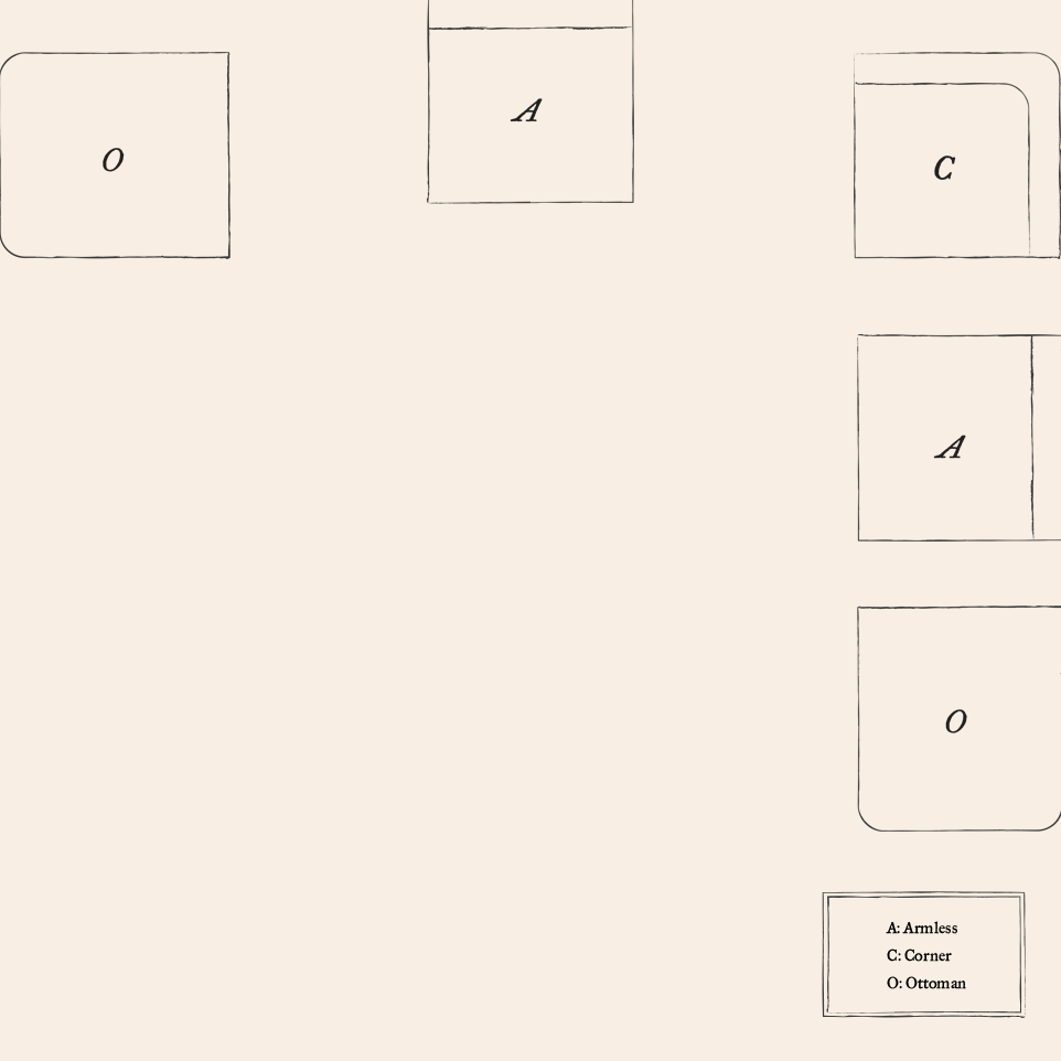 Our sectionals are all modular, meaning pieces can be arranged and rearranged to create an ideal configuration for your space. All modular pieces (including ottomans) connect to each other using zinc alligator clips fixed to the underside.