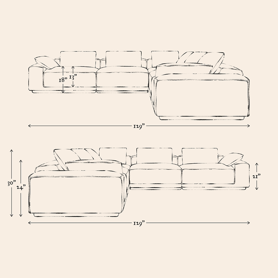 Our furniture is hand-made and in many cases quite soft so keep in mind dimensions may vary by an inch or two. Prefer a custom size? Contact us.