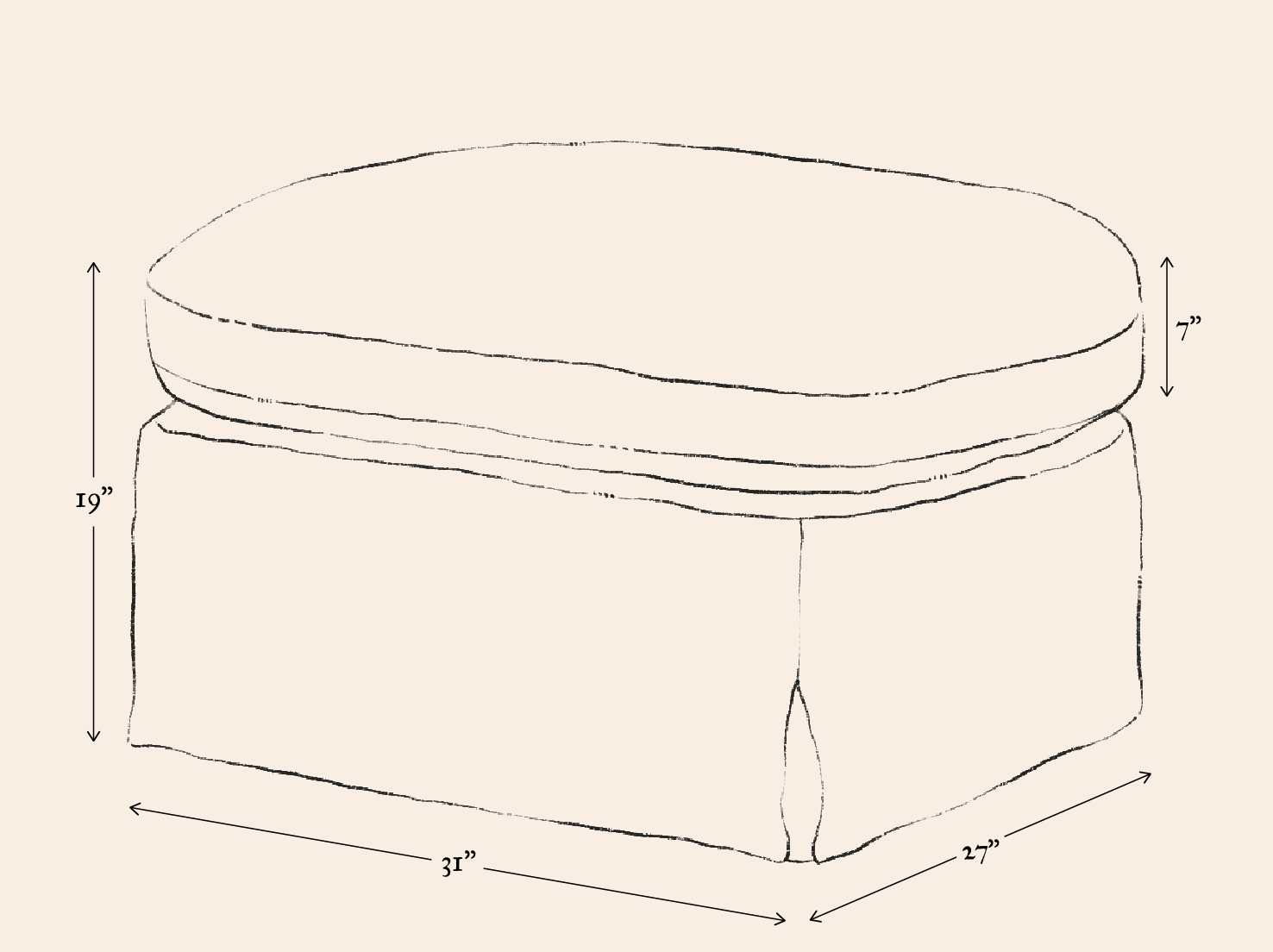 Our furniture is hand-made and in many cases quite soft so keep in mind dimensions may vary by an inch or two. Prefer a custom size? Contact us.