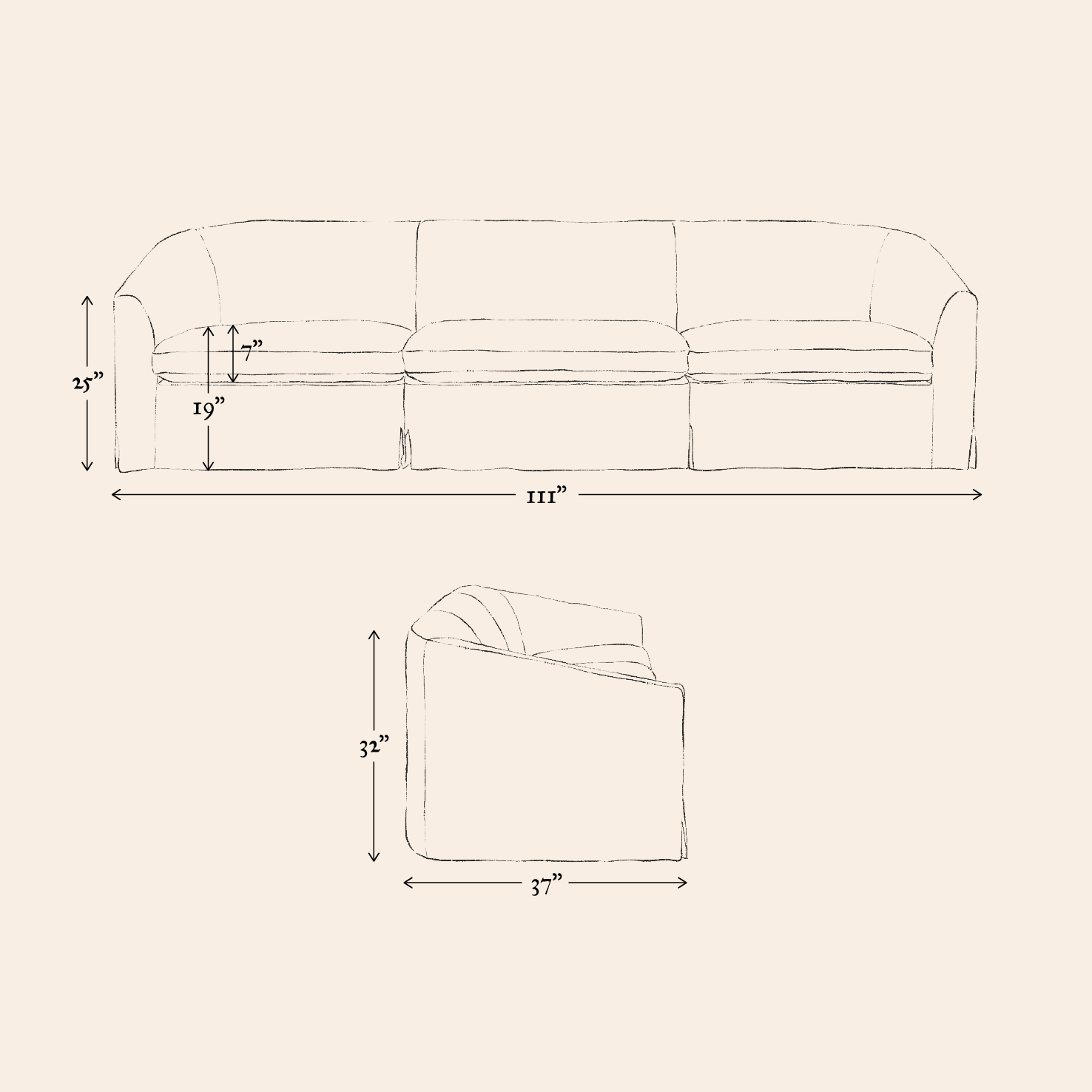 Our furniture is hand-made and in many cases quite soft so keep in mind dimensions may vary by an inch or two. Prefer a custom size? Contact us.